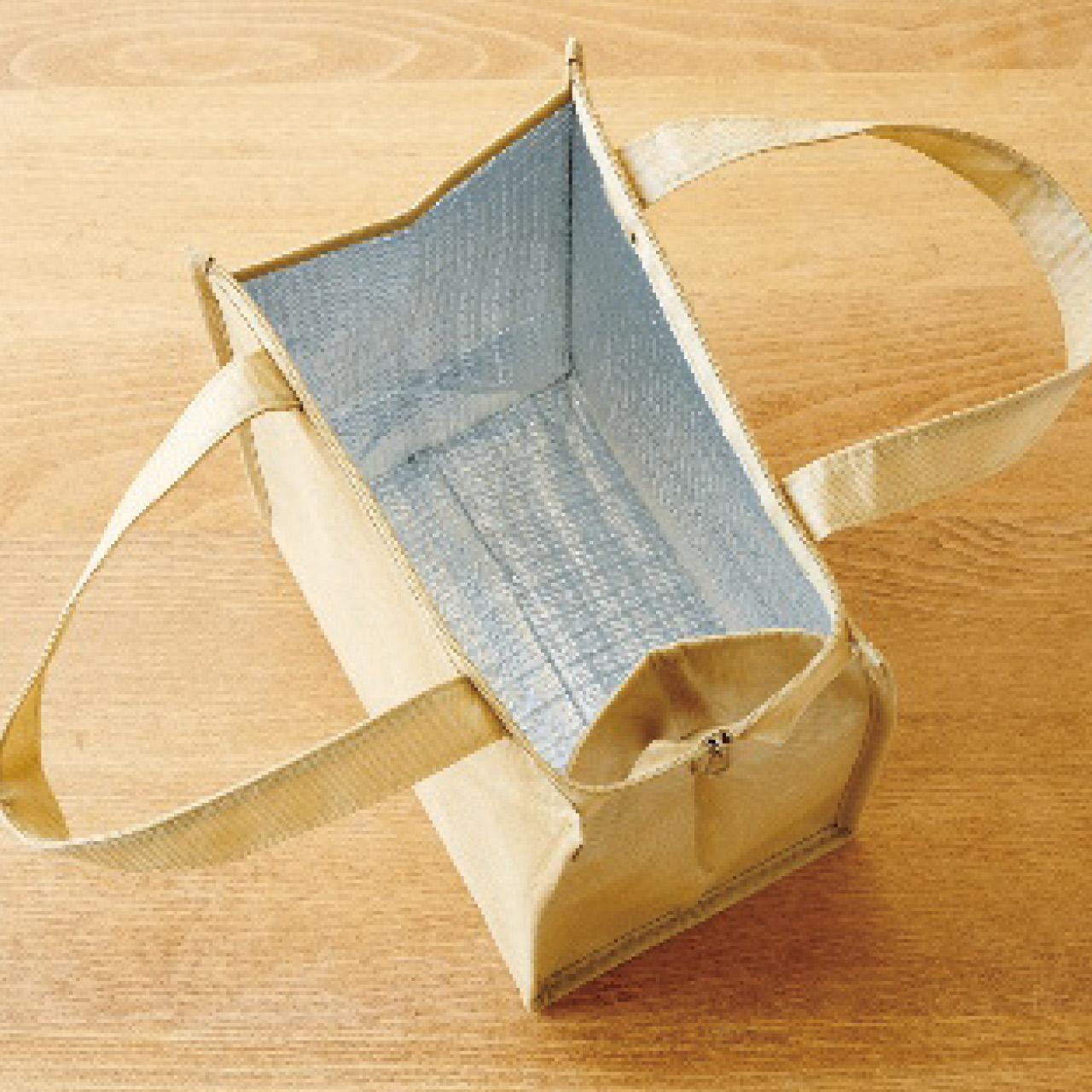 おしゃれなカラーのトートバッグ型不織布保冷温バッグ。軽量で持ち運びも便利。