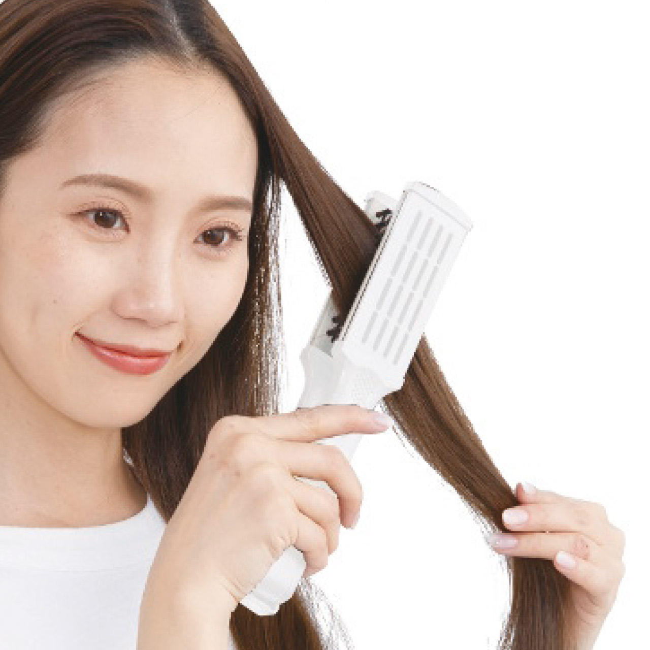 挟んで伸ばして簡単ストレートヘア。ドライヤーからのダメージを抑え、ツヤ髪に仕上げます。豚毛の天然油分がツヤ髪に導き、さらに静電気の発生を抑えるのでまとまった髪に。閉じて収納できるロック機能付き。