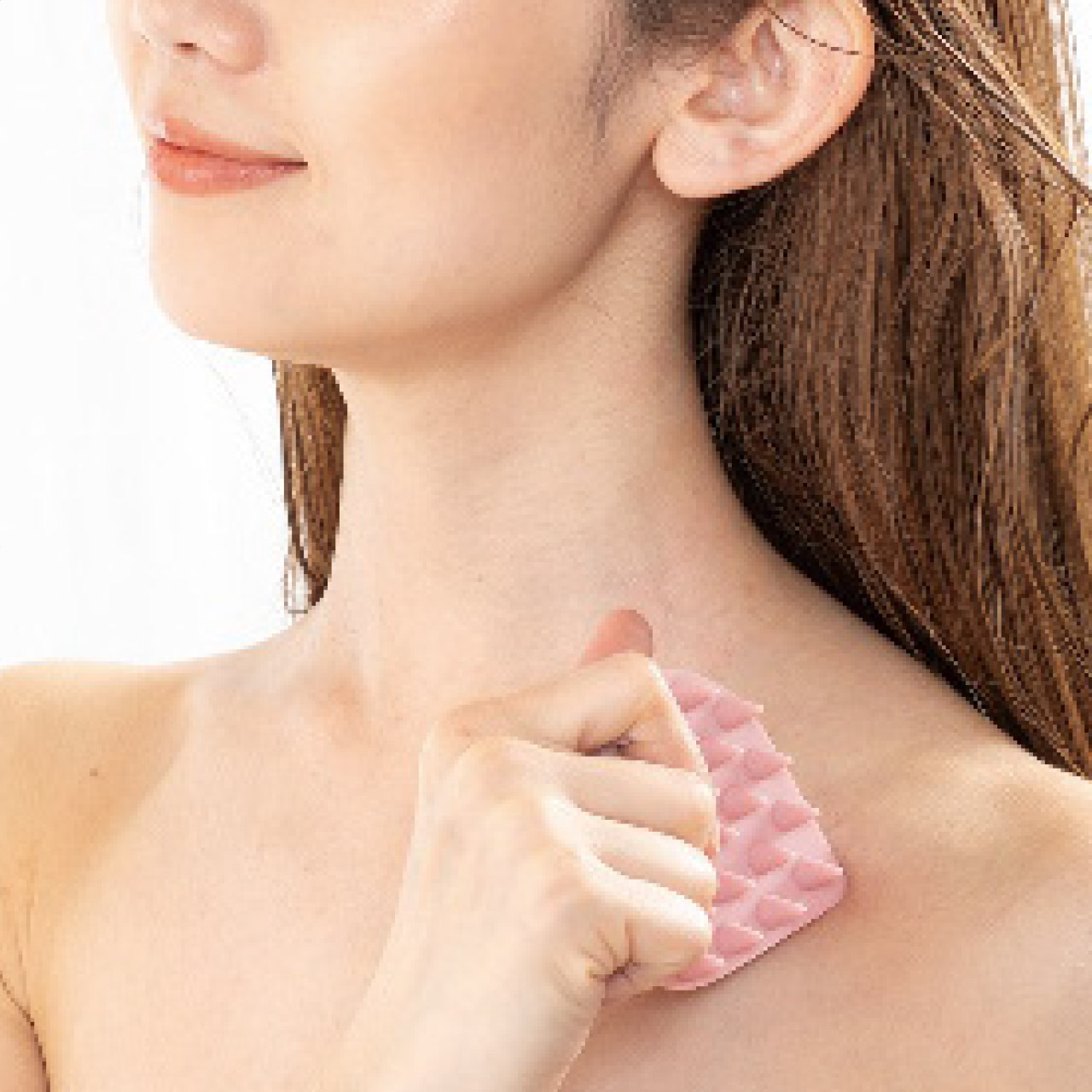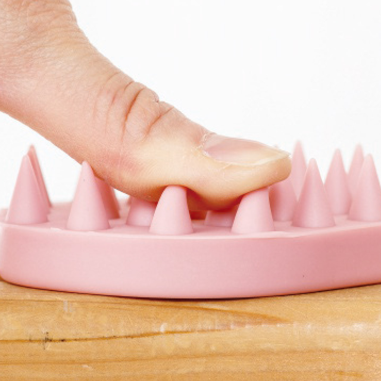 手にフィットしやすく持ちやすいスカルプケアブラシ。27個の突起が頭皮を優しくもみほぐします。肩や首にもご使用できます。