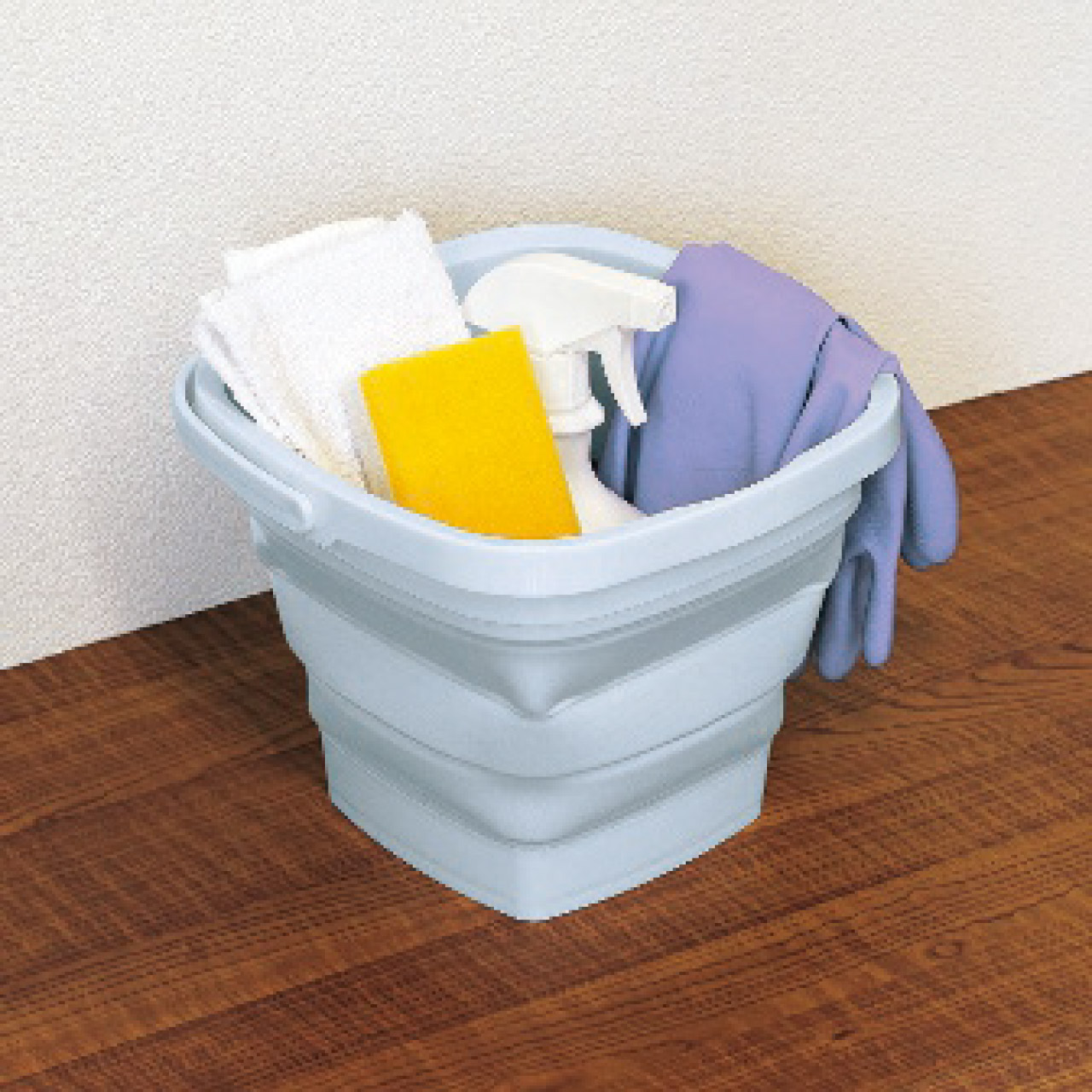 お掃除にもアウトドアにも活躍!折りたためるので隙間収納もOK。靴洗い、ガーデニング、掃除道具入れに。壁掛けもOK!