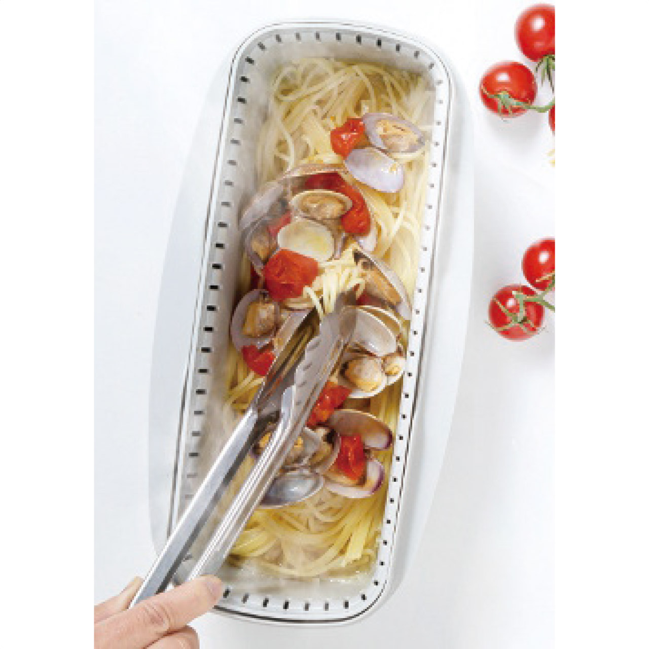 スチームのチカラで”もちもち”茹でパスタが電子レンジで作れます。麺と水を入れて加熱するだけで簡単。本体と中容器の2重構造により蒸気が容器の中で循環し、加熱ムラを防ぎます。※電子レンジ庫内幅290mm以上で使用できます。※ターンテーブルの電子レンジでは、電子レンジのサイズにより使用できない場合があります。