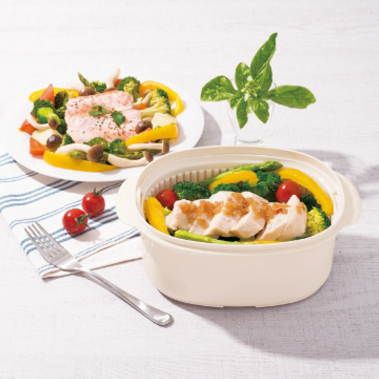 大容量だから温野菜とサラダチキンなどメインになる蒸し料理が同時に作れます。煮崩れせずにきれいにふっくら仕上がります。
