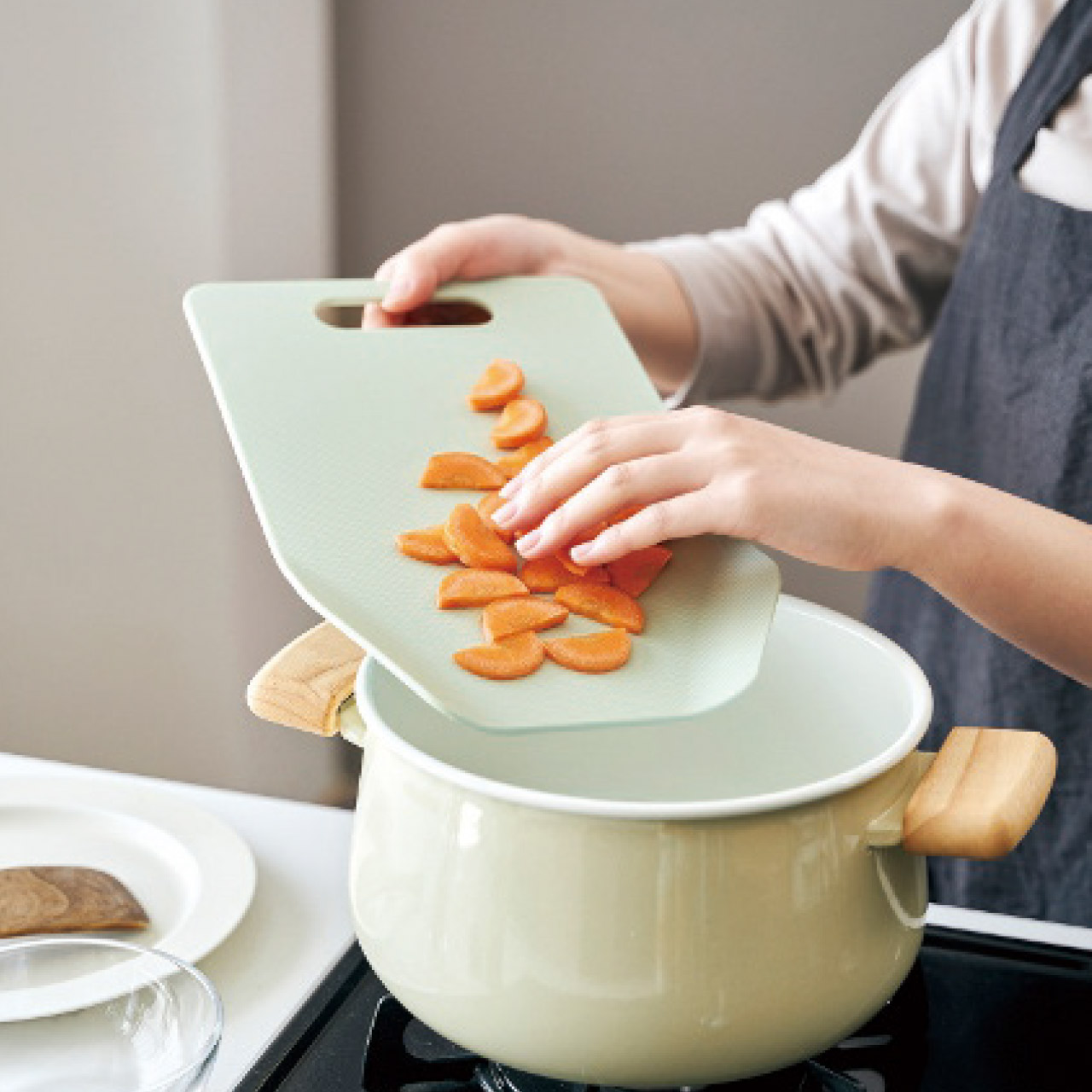 抗菌加工のまな板3枚セット。用途分けができ、収納時は重ねてコンパクトに収まる実用性もアリ。