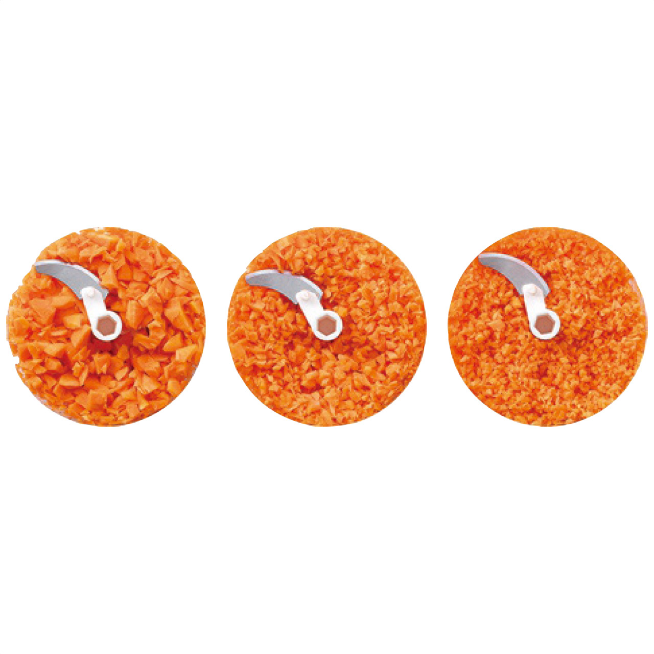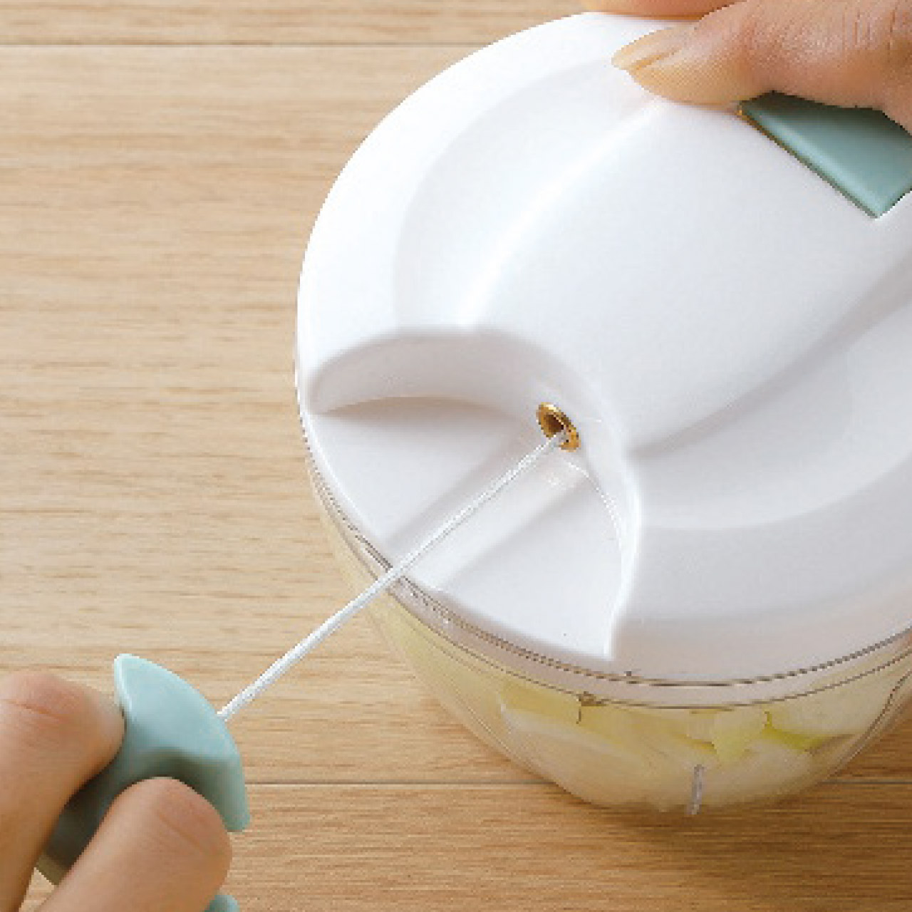 引くだけなので簡単!料理のレパートリーが広がります!時短でラクラク!大きさ自在のみじん切り!まな板から飛び出てしまったり、手にニオイがついてしまったりと、煩わしさのあるみじん切りが、食材を中に入れて数回引っぱるだけ、あっという間に完成!引く回数によって粗い→細かいを調節可能!離乳食や介護食など少量の調理にも便利!