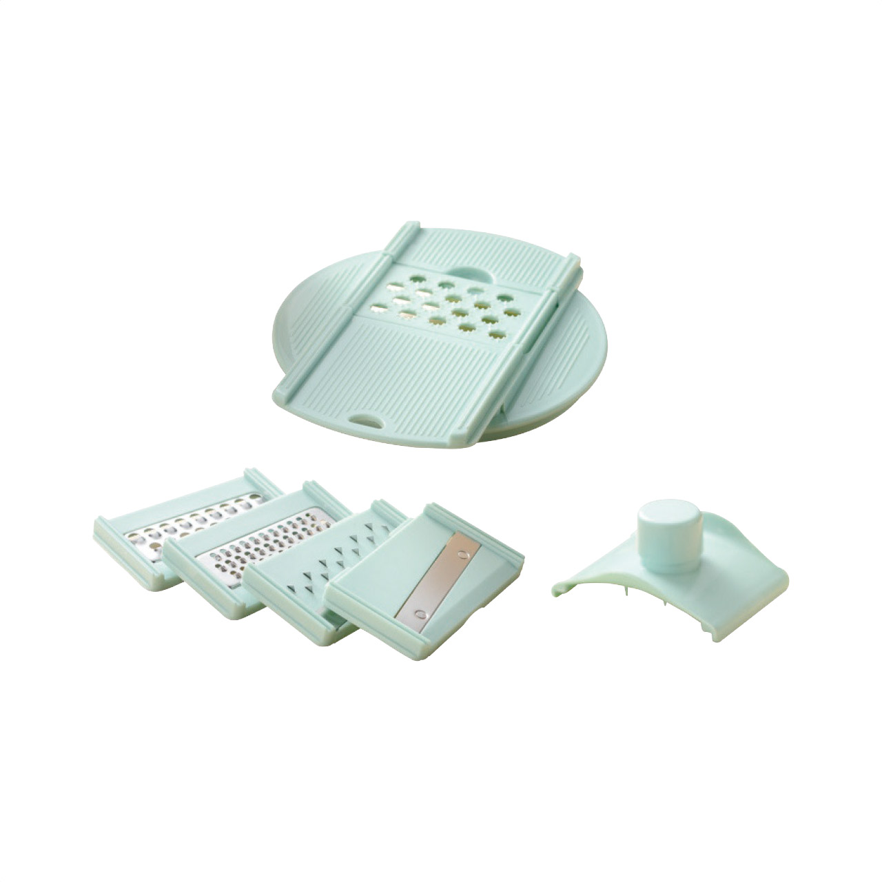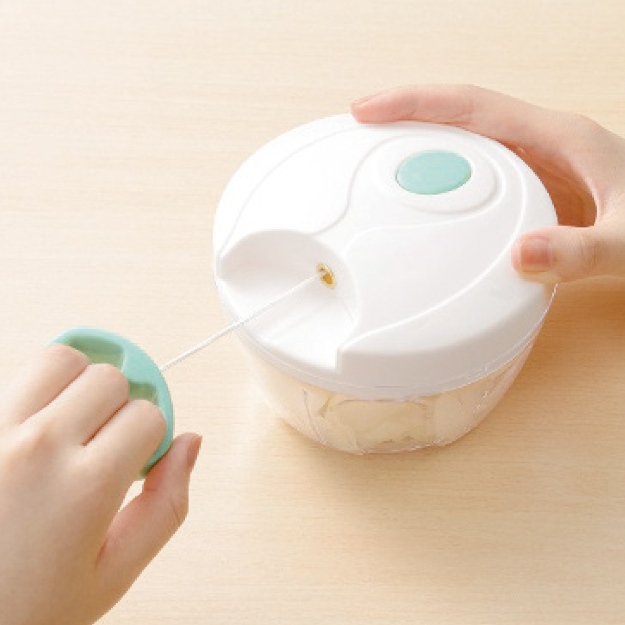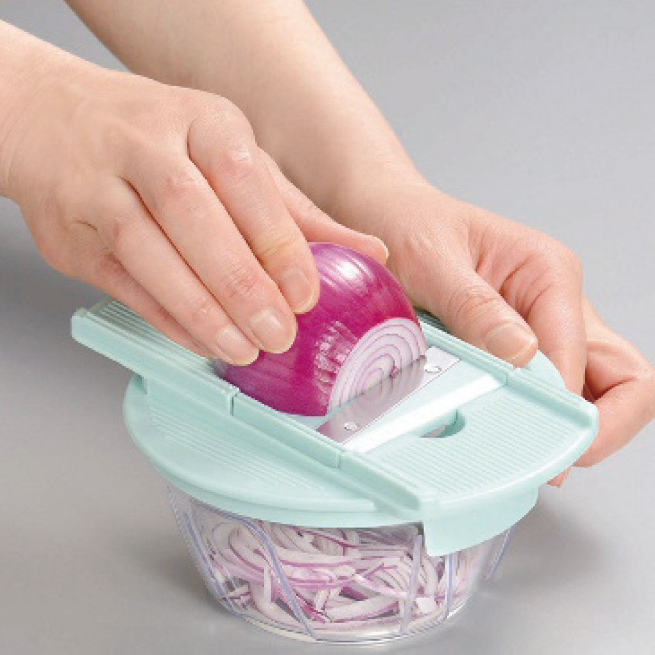 煩わしさのあるみじん切りも数回引っ張るだけ、あっという間に完成!引く回数で粗さ調節可能。離乳食・介護食作りにも活躍!5種類のスライサー付きでレシピの幅が広がります!