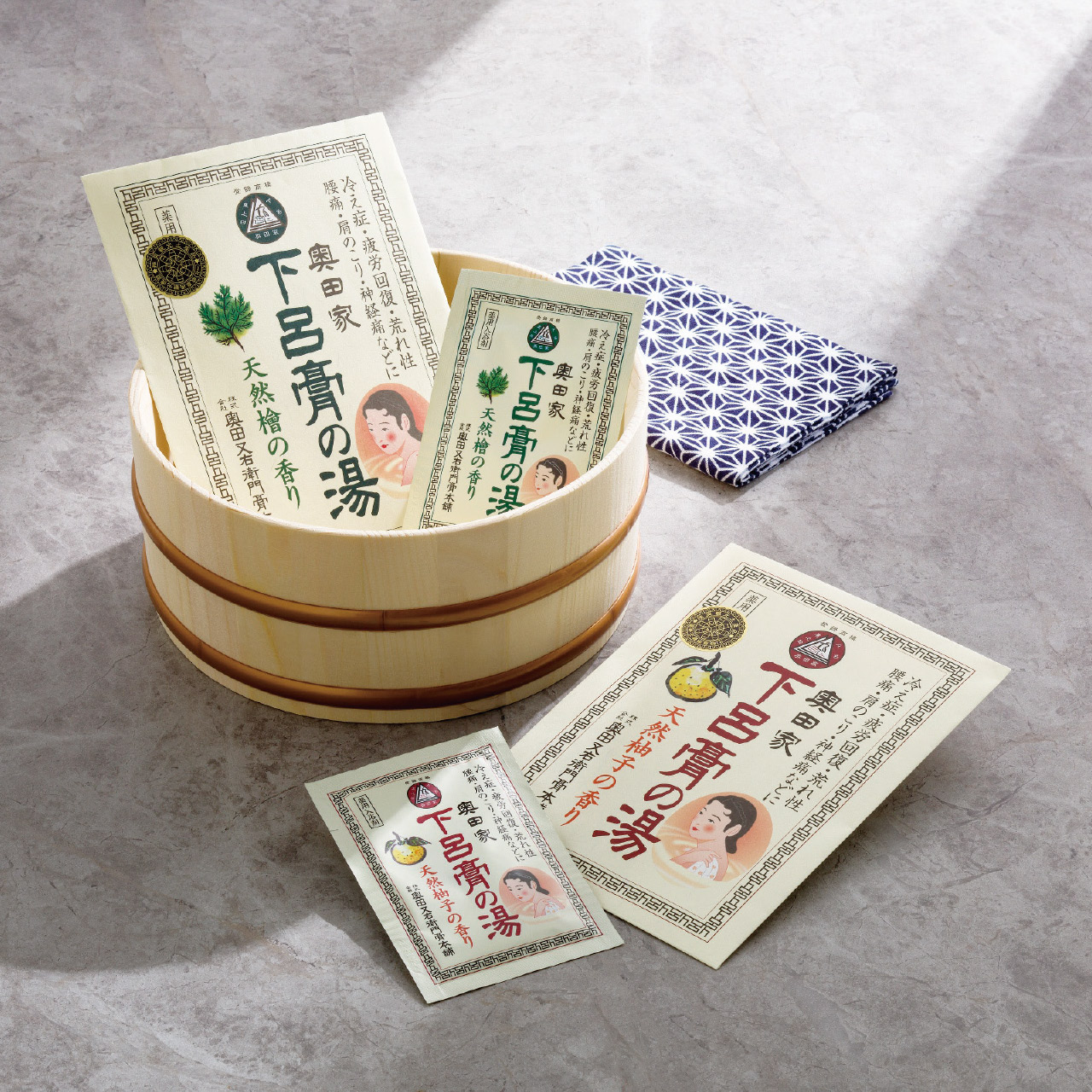 下呂温泉の伝統薬「下呂膏」の天然成分配合の薬用入浴剤。薬用・温浴効果と精油の香りでリラックス