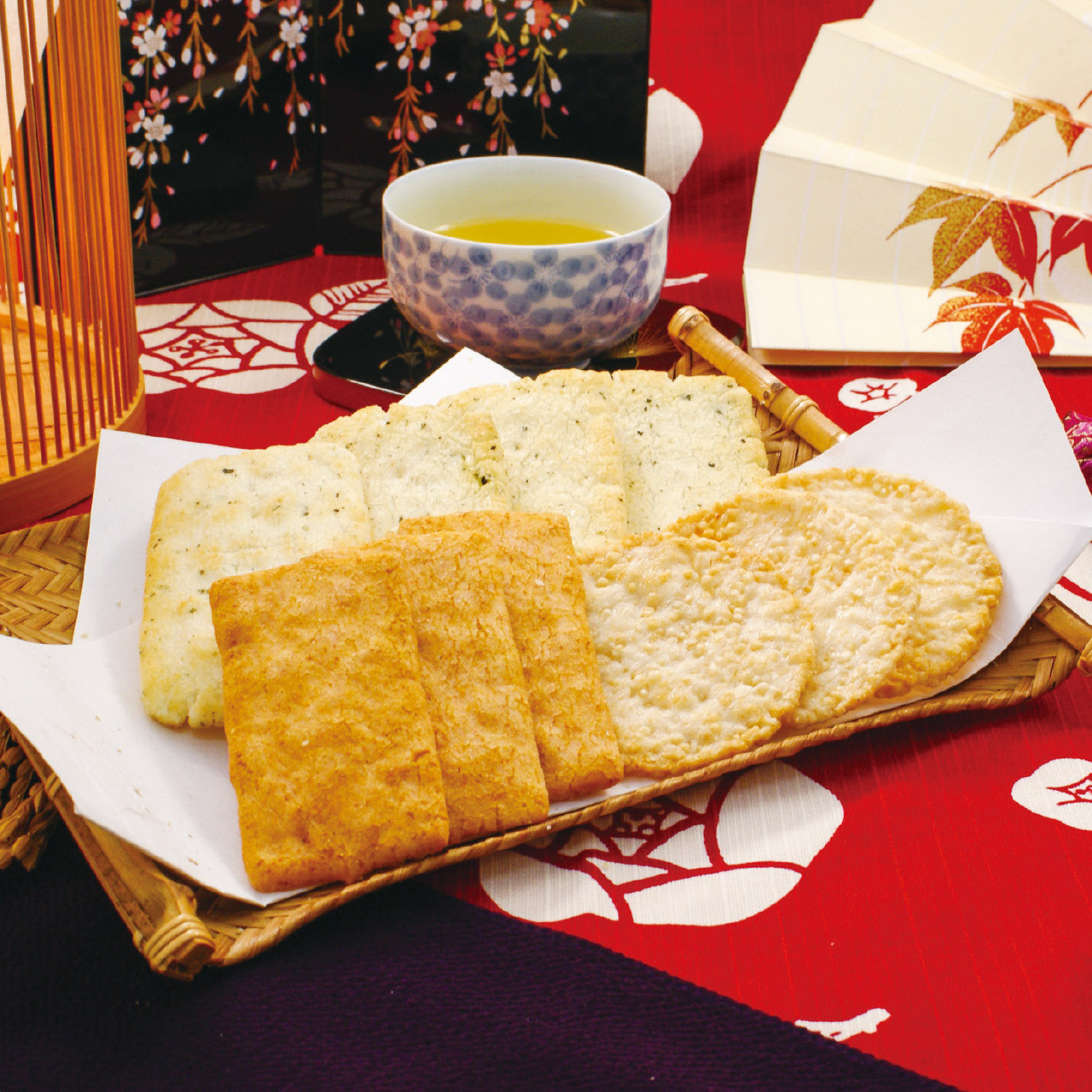国産米100%にこだわりました。磯の香りひろがる青さ海苔煎餅と、海老とカレーが癖になる海老カレー煎餅の詰合せです。