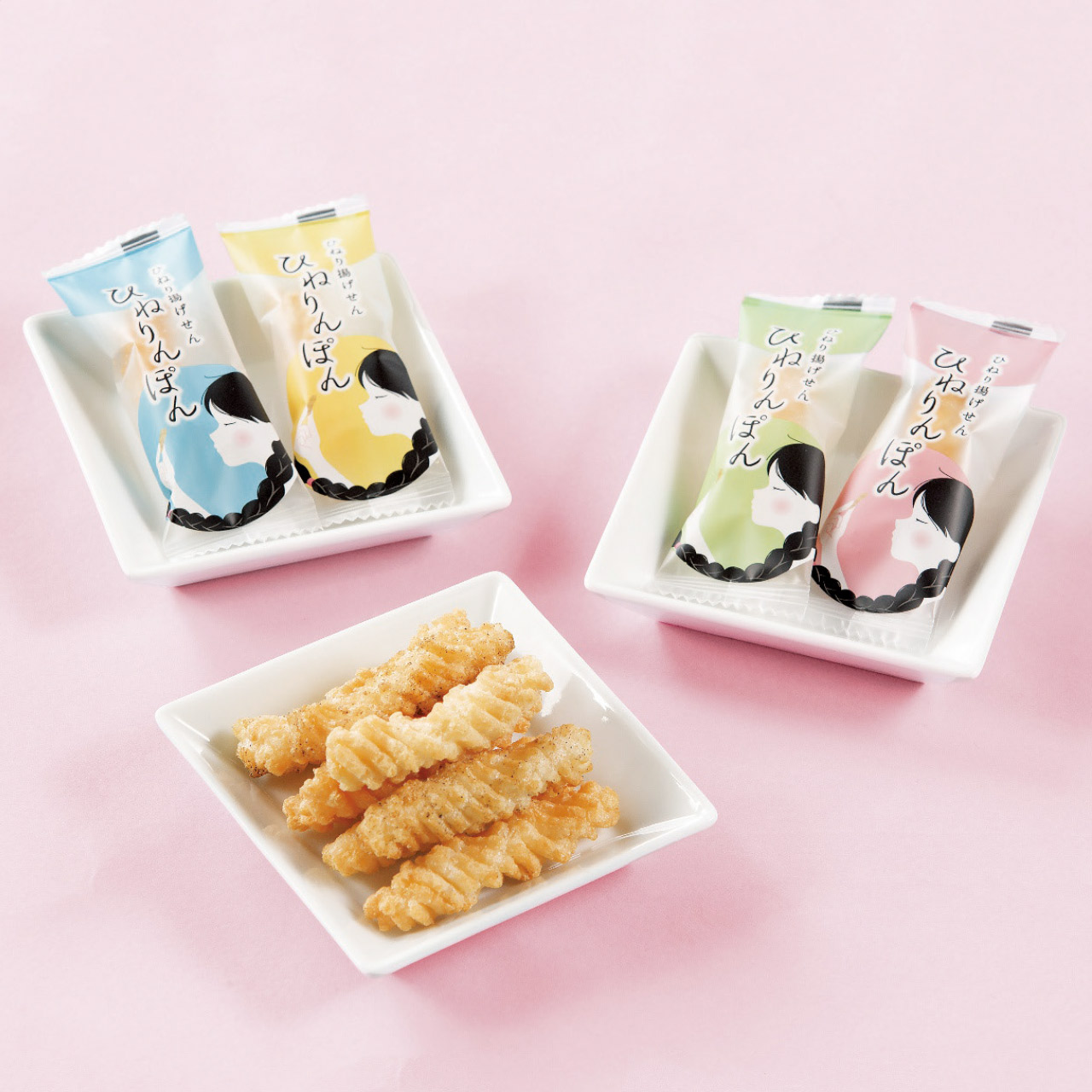 カリッと揚がったひねり揚げの生地を、あっさり塩味とコクのあるカレー味で仕上げましたひねり揚げのアソートギフトです。