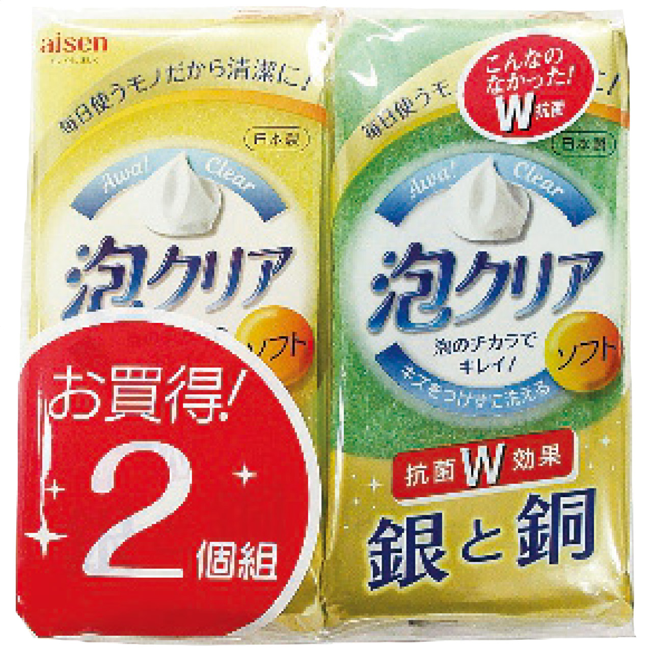 銀と胴の抗菌W効果!キズをつけずに汚れをしっかり落とすソフトなスポンジ。