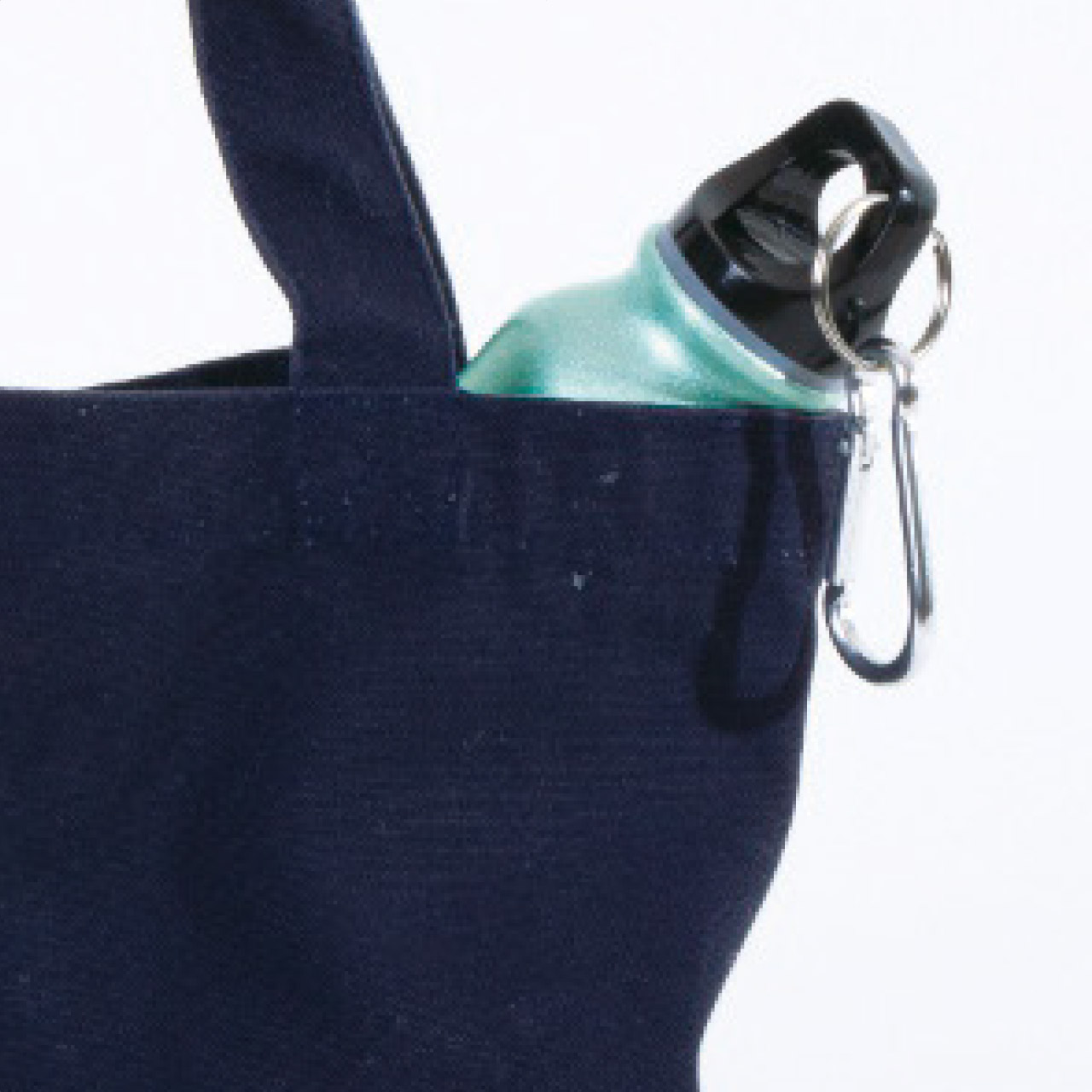 鞄の中で場所を取らないスリムなアルミボトル。携帯に便利なカラビナ付。持ち手に止めれば、転倒防止にもなります。ちょうど良い容量と軽さを優先したボトルです。