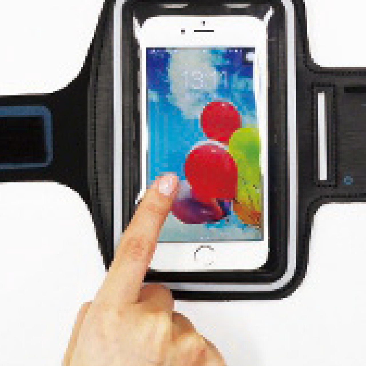 腕に装着してそのままタッチ操作可能!ランニングやウォーキングに大活躍!イヤホンを通せるホールや、反射フレーム、キーポケット等の便利な機能付き。