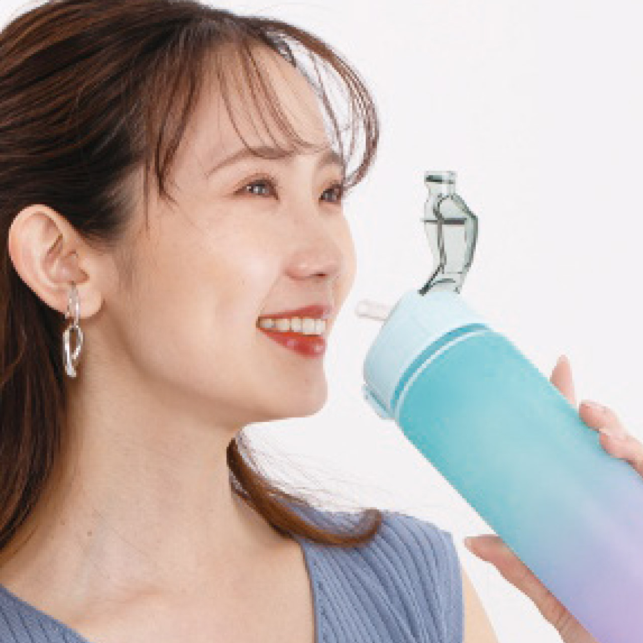 時間メモリで水分補給をリマインド。正しいタイミングで適切な量を取ることが重要。1日の水分摂取量2リットル(目安)時間のメモリで水分補給をサポート。意識的にこまめな水分補給をする習慣を!大容量:750ml。機能性・デザイン性に優れたシルエットクリアマットな心地よい質感。