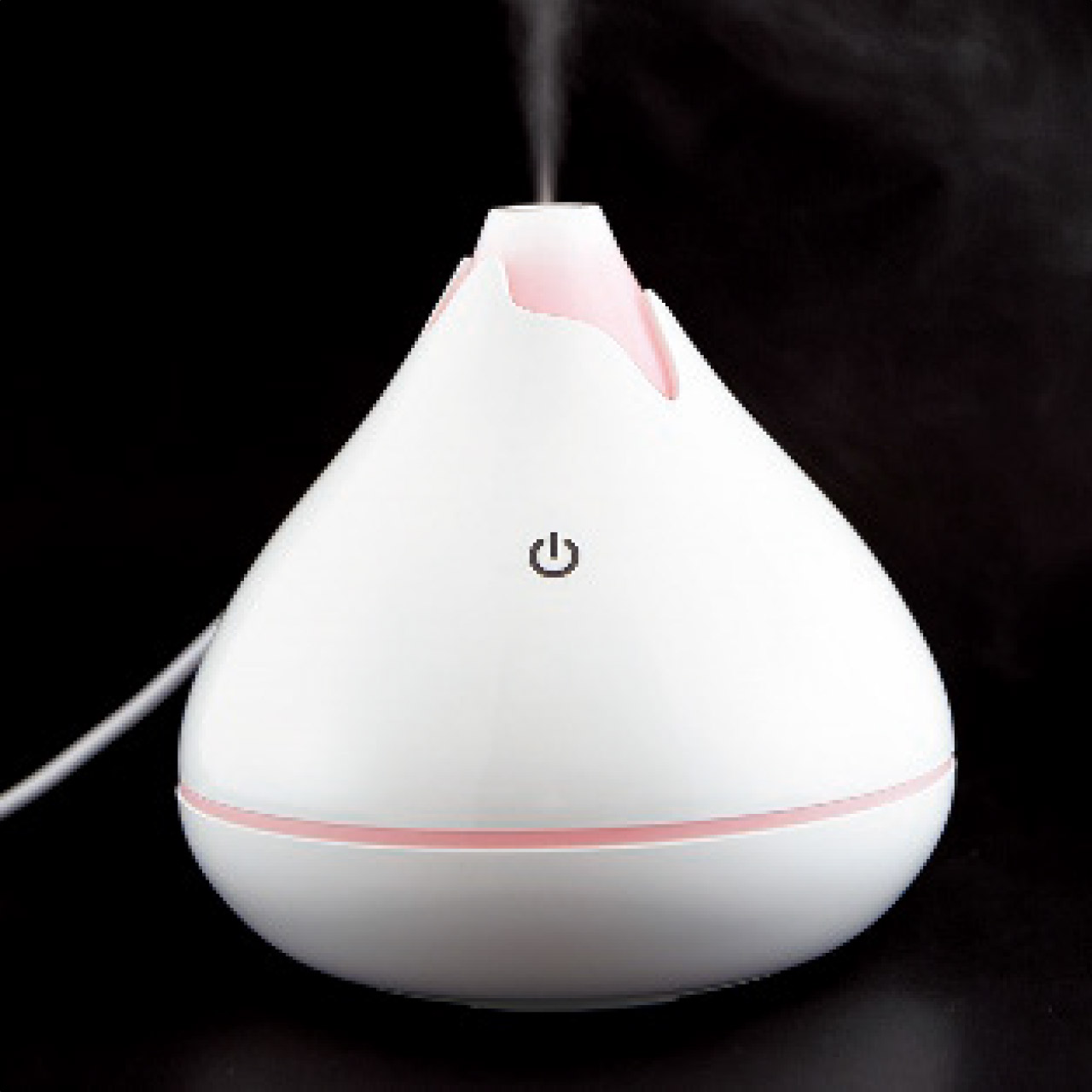 安定感のある山型は「富士山」をイメージした低重心形状。個人で机上で使ったり、テーブルの上で使う際に、水をこぼしてはいけない場所でも倒れにくいので安心。・超音波式・容量:約350ml・アロマオイル対応・LED7色イルミネーション機能・オートパワーオフ・USB電源