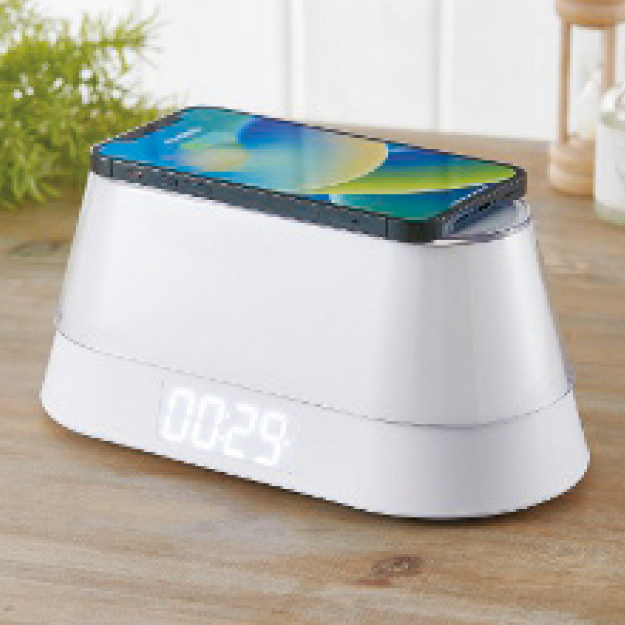 ワイヤレススピーカー・ワイヤレス充電クロック(ナイトライト付)