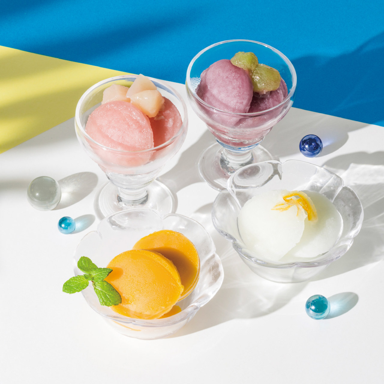 ■商品詳細 シャーベット58g(ピーチ・柚子・マンゴー・巨峰各3個)・賞味期間/製造日より常温約180日・【もも】