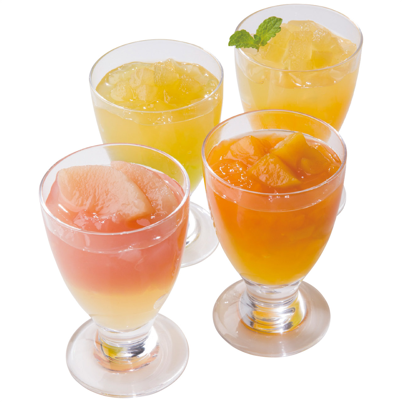 フルーツの美味しさをぎゅっと閉じ込めた、果肉入りのゼリーと、彩りも美しい2層ゼリーの詰め合わせです。