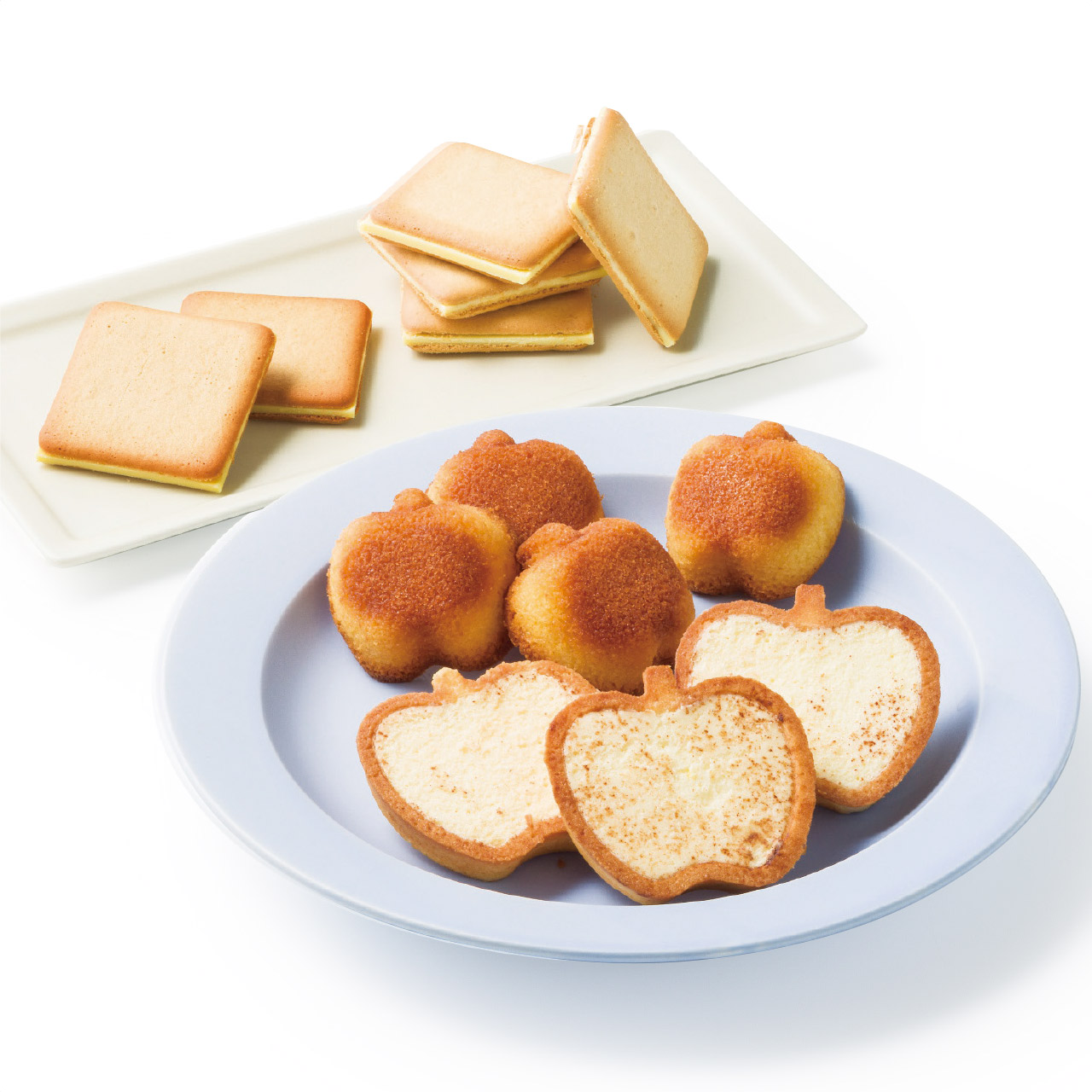りんごの形が可愛らしいコロコロしたしっとり食感のりんごのフィナンシェとサクサク食感のりんごのクッキー、りんご型のチョコタルト 3種類のスイーツが楽しめる焼き菓子セットです