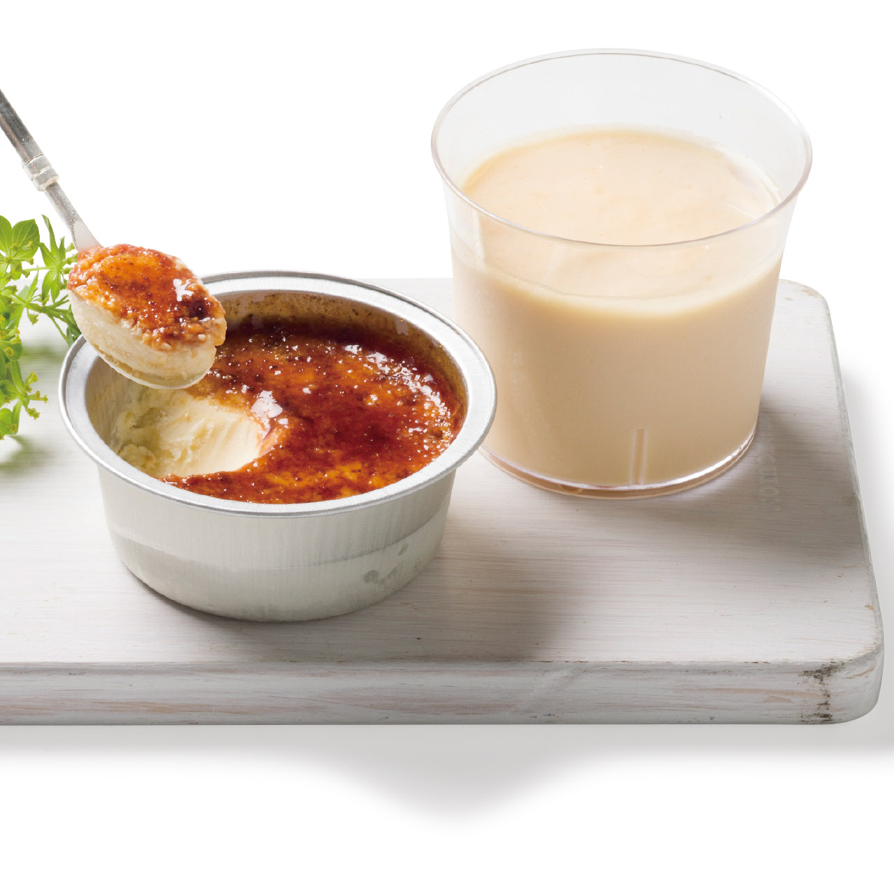北海道産の牛乳で仕上げたプリンと生クリームとクリームチーズを使用し焦がし風味のキャラメリゼが合わさったあいすプリンのセット。