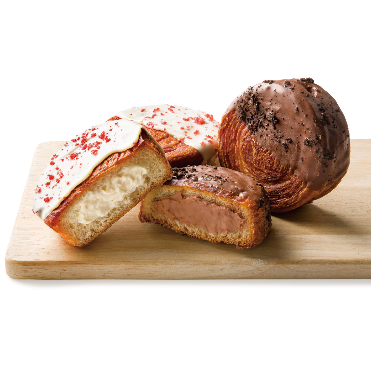 ニューヨーク発祥の、特徴的な渦巻き型クロワッサン「クロワッサンロール」。風味豊かなクロワッサン生地に、なめらかなカスタードクリームや濃厚チョコクリームをたっぷり詰め込み、それぞれチョココーティングで贅沢に仕上げました。見た目も味わいも華やかな新感覚スイーツを、2つのフレーバーでお楽しみください。