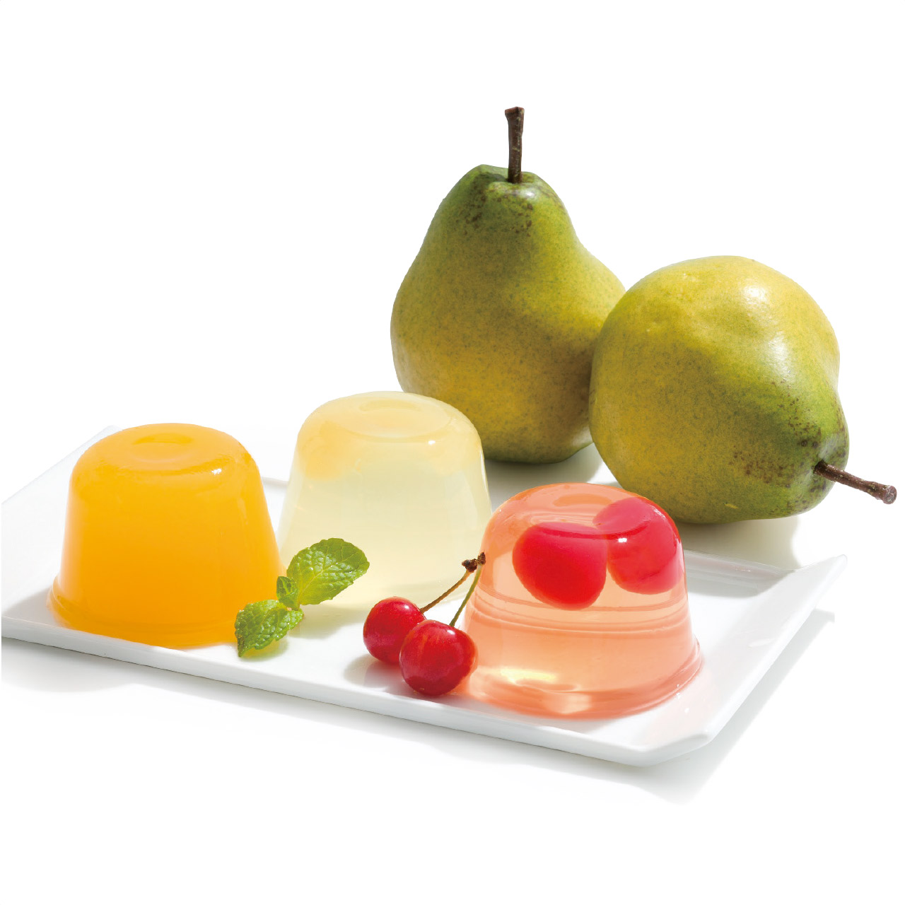 山形県を代表するフルーツであるさくらんぼ、ラ・フランス、黄金桃の果肉を使ってつくった、見た目も爽やかなゼリーのセットです。贅沢な山形の旬の味わいをいつでもお楽しみいただけます。