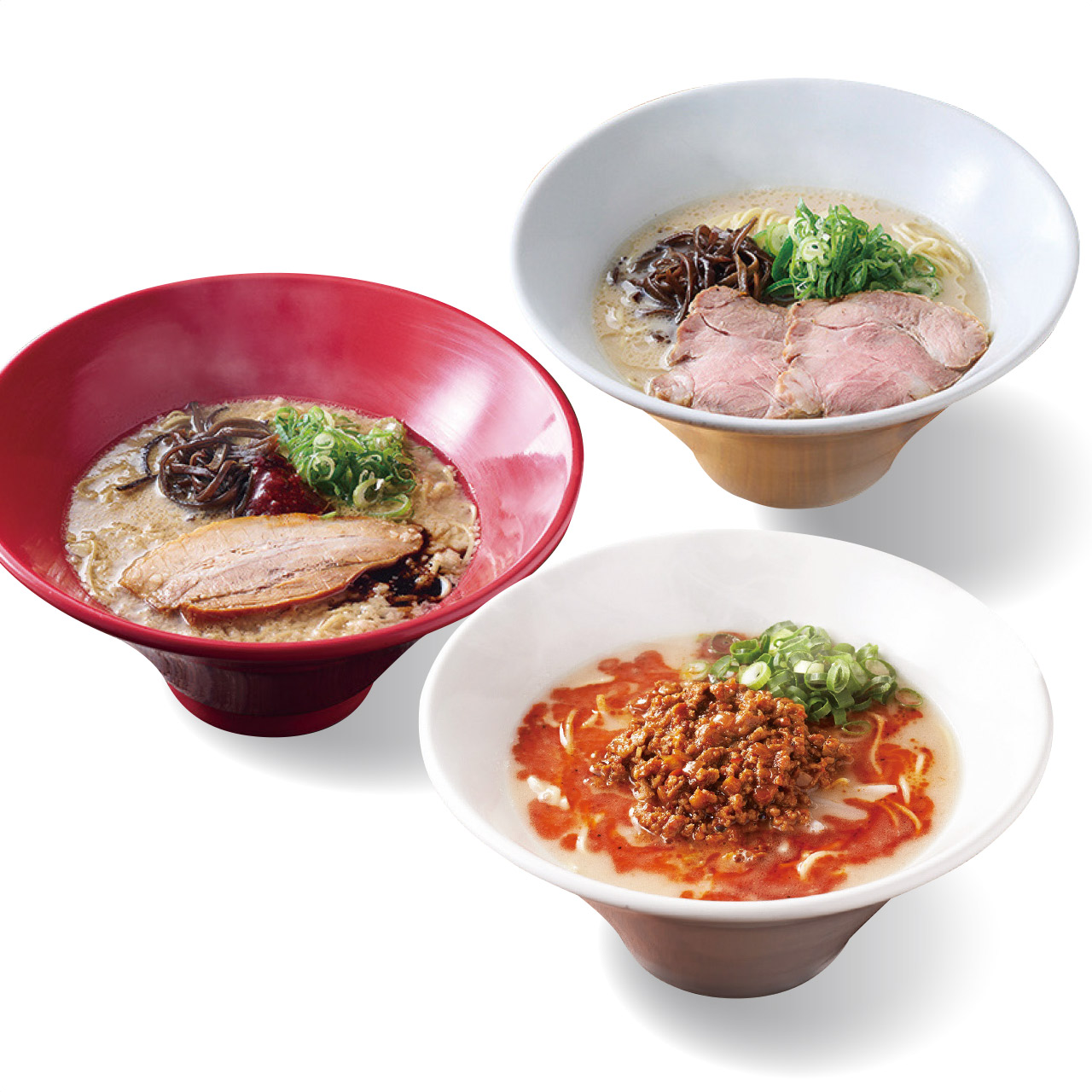 創業当時の味を今に引き継ぐ、一風堂のとんこつラーメンの本流である「原点の一杯」白丸と醤油のコクに、ガーリックが効いた香油、特製の辛味噌。スープの味わいと深みを楽しめる「革新の一杯」赤丸、なめらかなとんこつスープに特製のスパイスを合わせ、辛みとコクを加えた「刺激の一杯」からか、細麺替玉を詰め合わせました。一風堂のお店の味をお楽しみ下さい。