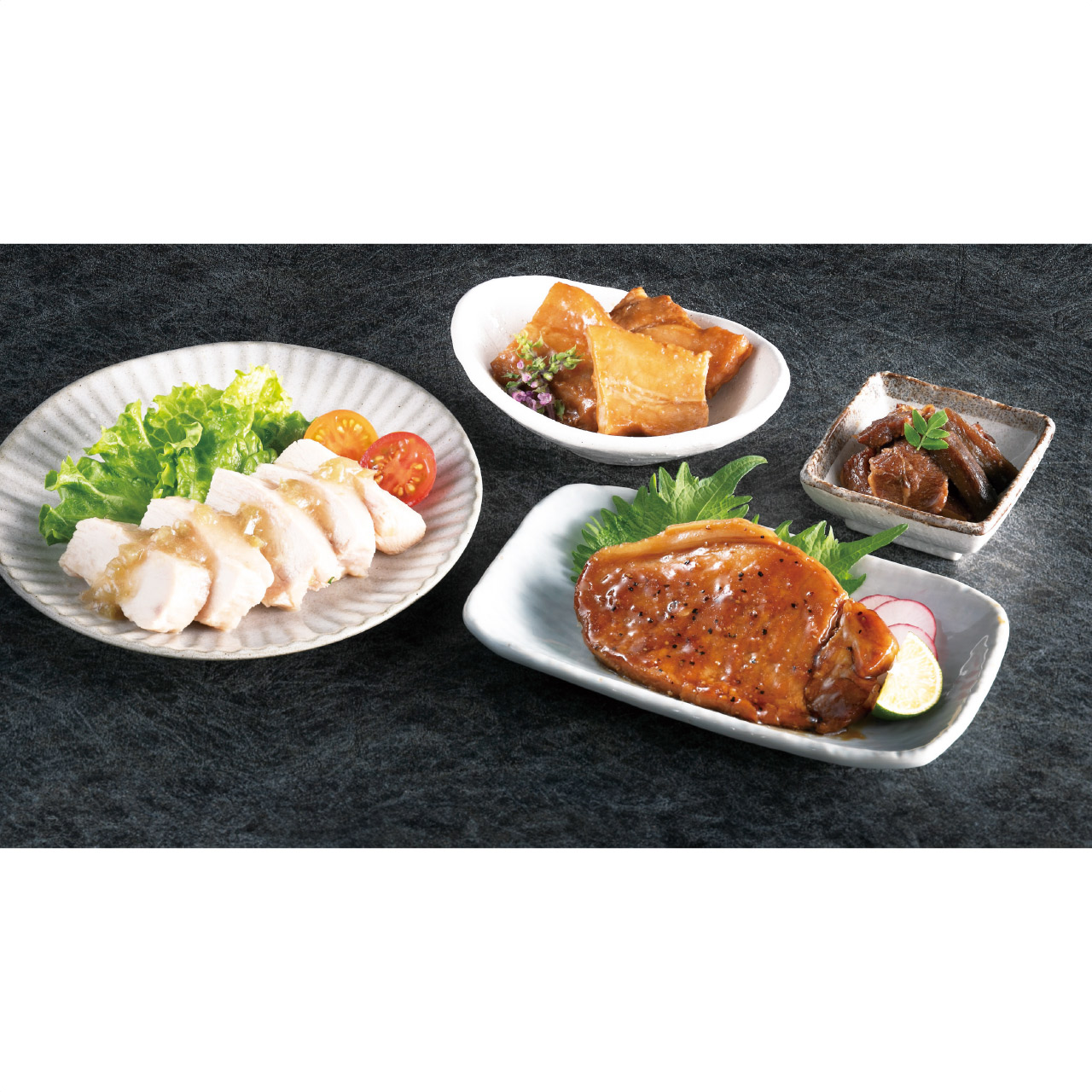 東京・恵比寿「賛否両論」店主、笠原将弘が監修。真空調理製法でやわらかく仕上げたローストビーフに、しっとりとした蒸し鶏の梅ジュレ仕立てなど、人気の和惣菜を詰め合わせました。