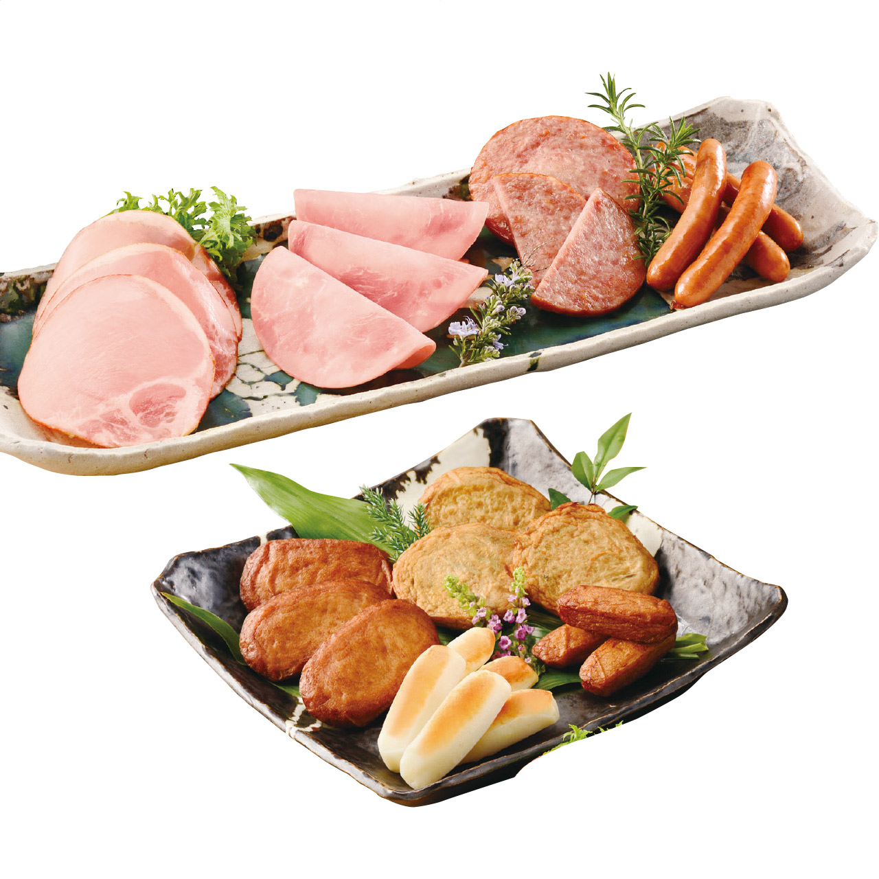 鹿児島県産黒豚使用のスライスハムと本場鹿児島 串木野からのさつま揚げセットのバラエティ豊かな組み合わせ。おつまみとしてもピッタリです。