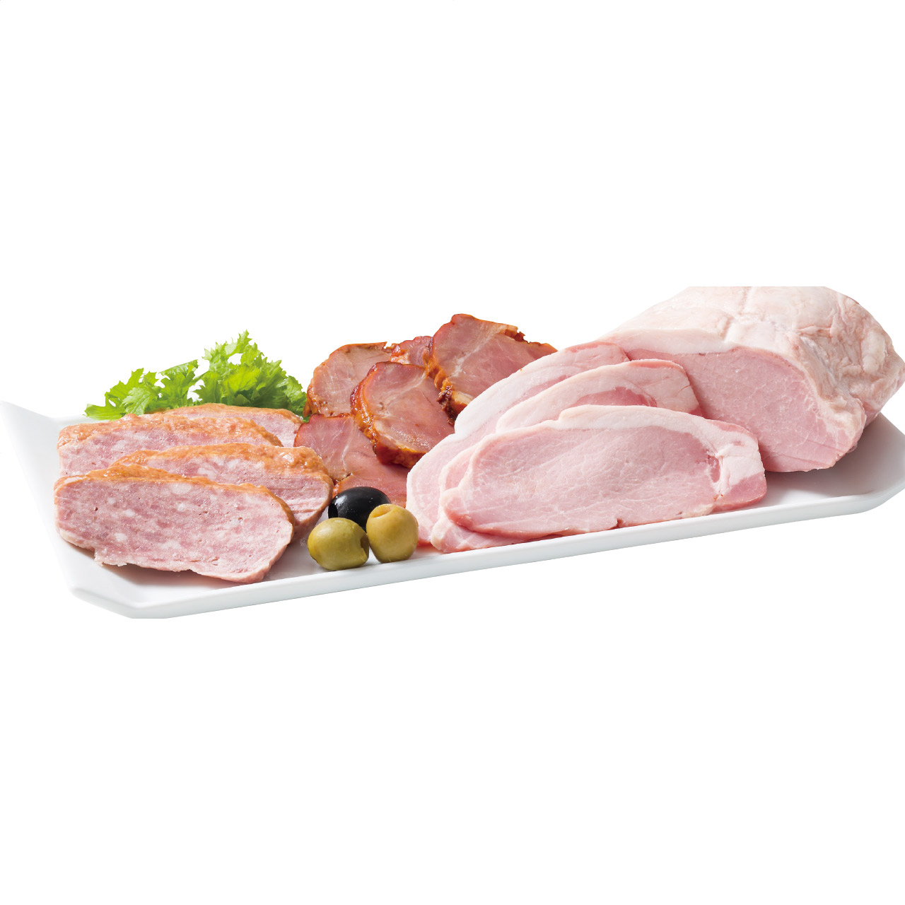 特選ホワイトロースハム、スモークローフ、しっとり焼豚、生ハムロース、絹びきウインナーの人気の5本詰めセットです。