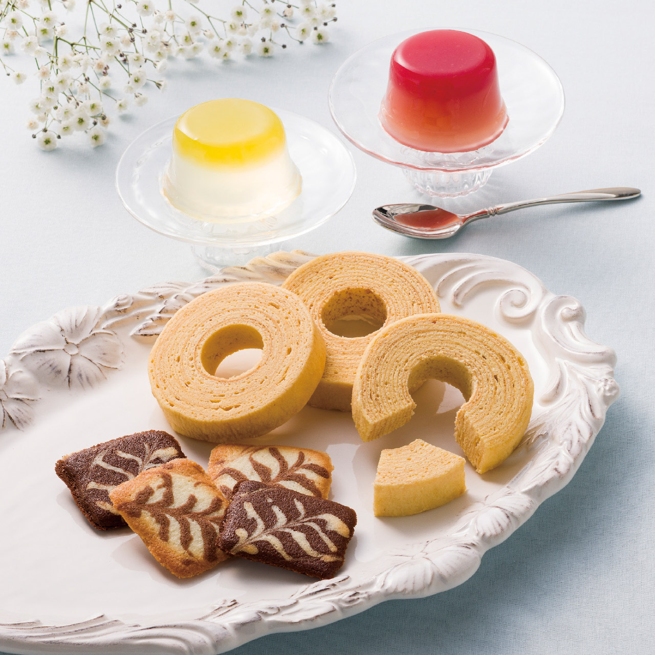 ふんわり柔かな食感のリトルバウムのアソート。人気のプレーンと、夏季限定のレモン、オレンジを詰め合わせました。日本で初めてバウムクーヘンを焼いた創業者、カール・ユーハイムの意思を100年以上にわたって受け継ぎ、シンプルな原料と菓子職人の技術を活かした自然なおいしさのお菓子を作り続けています。