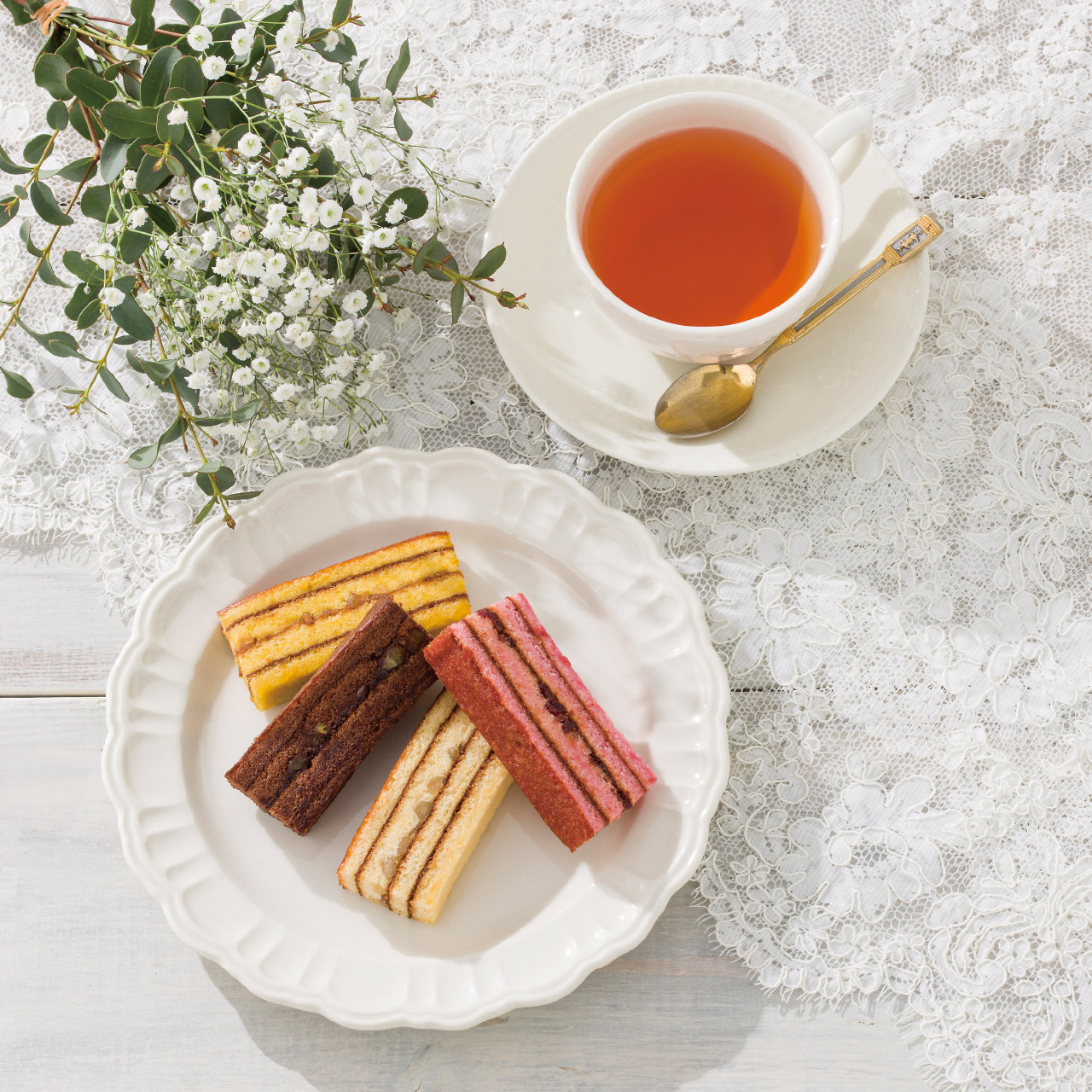 相性のよいナツツやドライフルーツを挟んだステイック型のバウムクーヘンです。
