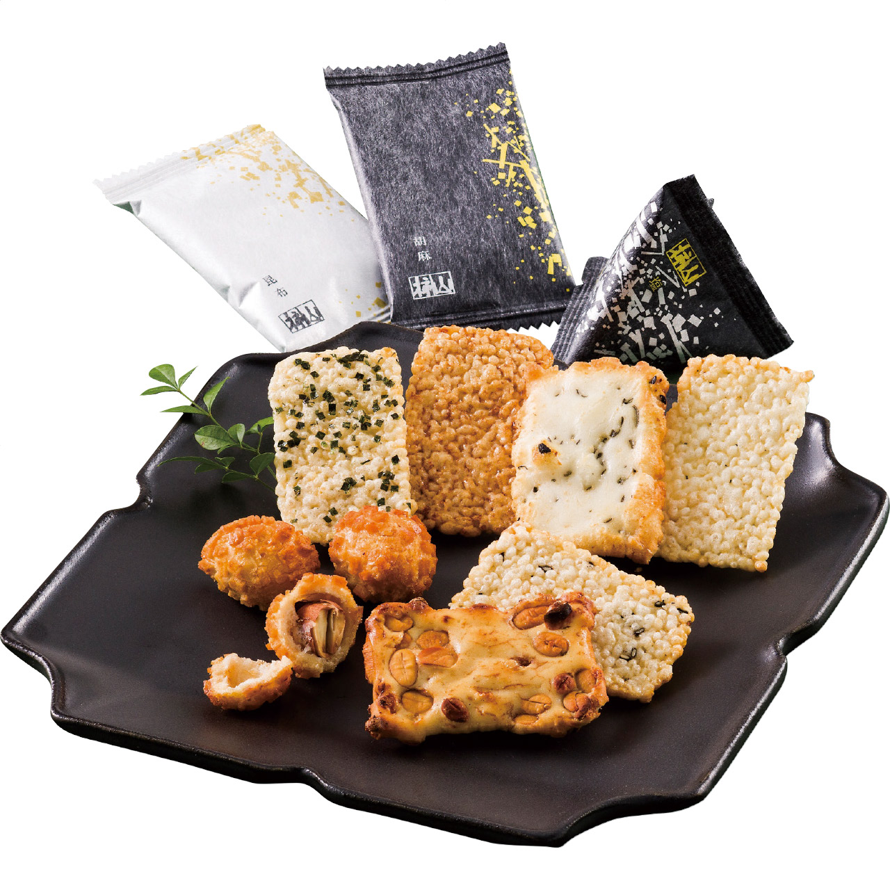 上品な装いの赤坂柿山一番人気商品。こだわりのもち米を使用。お米一粒一粒の美味しさを活かした薄焼きおかきの慶長、アーモンドをあられで包み込み焼き上げた慶凰など、お米本来の旨味がご堪能いただける一品は、大切な方への贈答や改まった席へのお使い物に好適です。