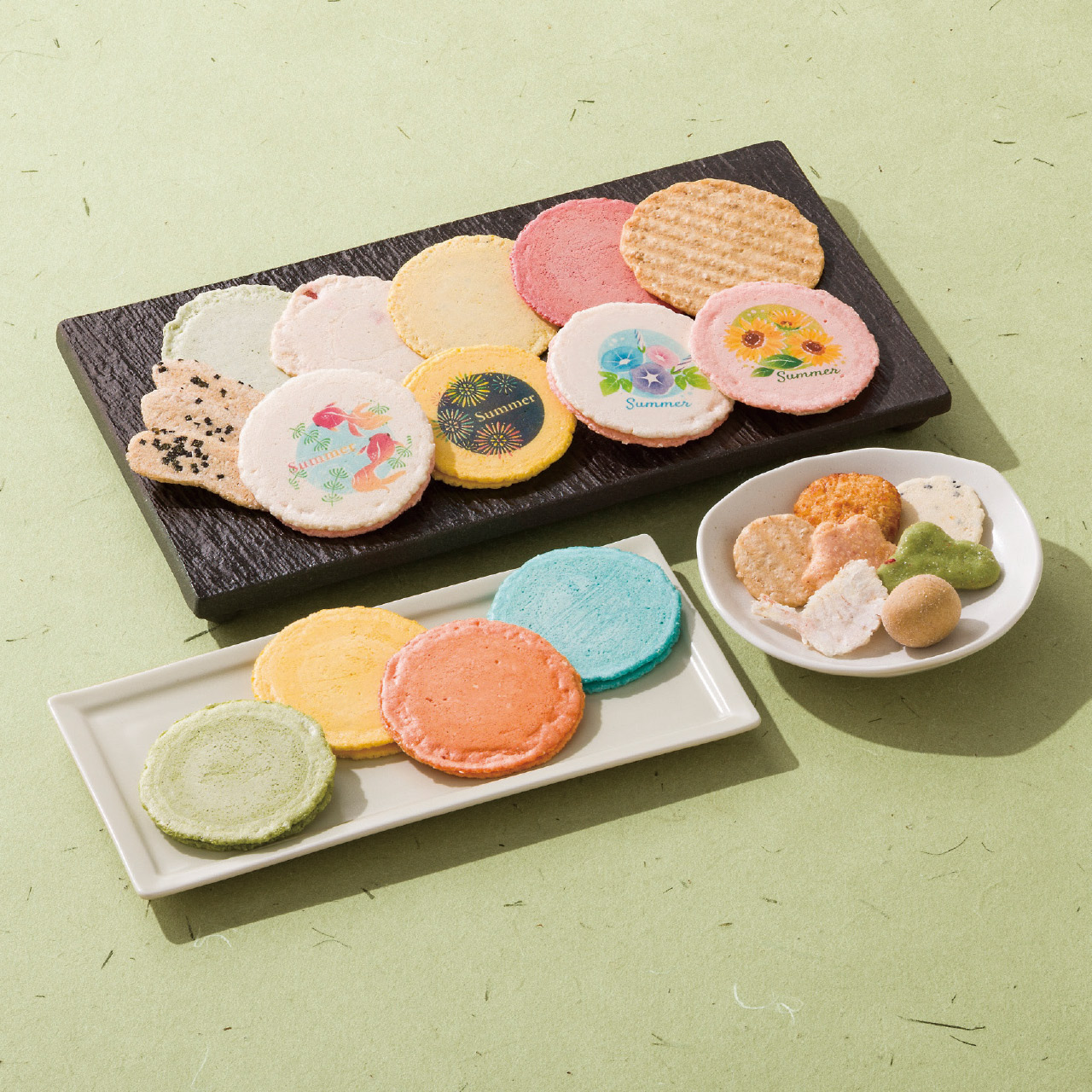 クアトロ(QUATTRO)とは、イタリア語で「4」を表す言葉。志満秀オリジナルの4種のチーズクリームをえびせんべいでサンドしました。
