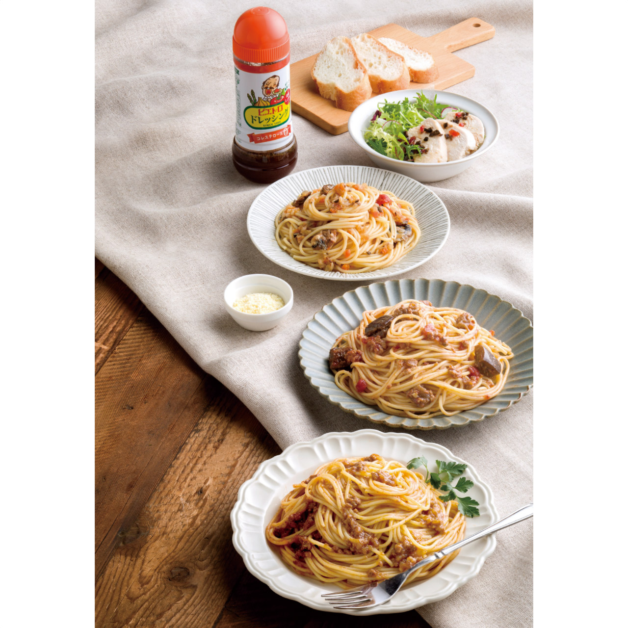 ■商品詳細 和風しょうゆドレッシング280ml×1本・パスタソース1人前(お肉好きのあなたのためのボロネーゼ135g・絶望スパゲティ95g・なす辛120g)・AGNESIスパゲティ(1.7mm)500g各1個・賞味期間/製造日より常温約90日・【小麦・牛肉・大豆・鶏肉・豚肉・りんご】