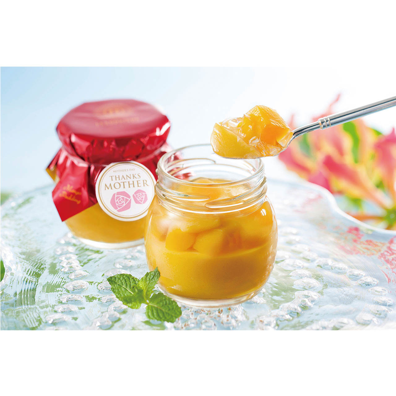 マンゴー果肉が贅沢に入ったスイーツ。あとくちの良い果肉入りのゼリーと、濃厚なマンゴープリンの二層仕立て。フランス国家最優秀職人章「M.O.F」受章の女性天才シェフ、アンドレ・ロジェのこだわりの一品です。