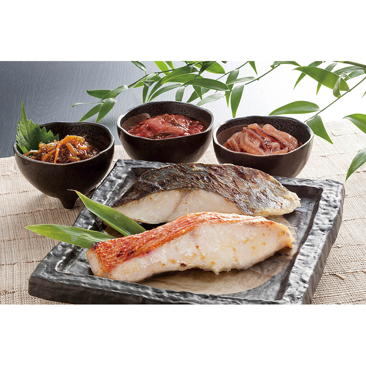 ■商品詳細 さわら、金目鯛、銀鮭各60g×各1、松前漬、たこ塩辛、いか塩辛各50g×各1
