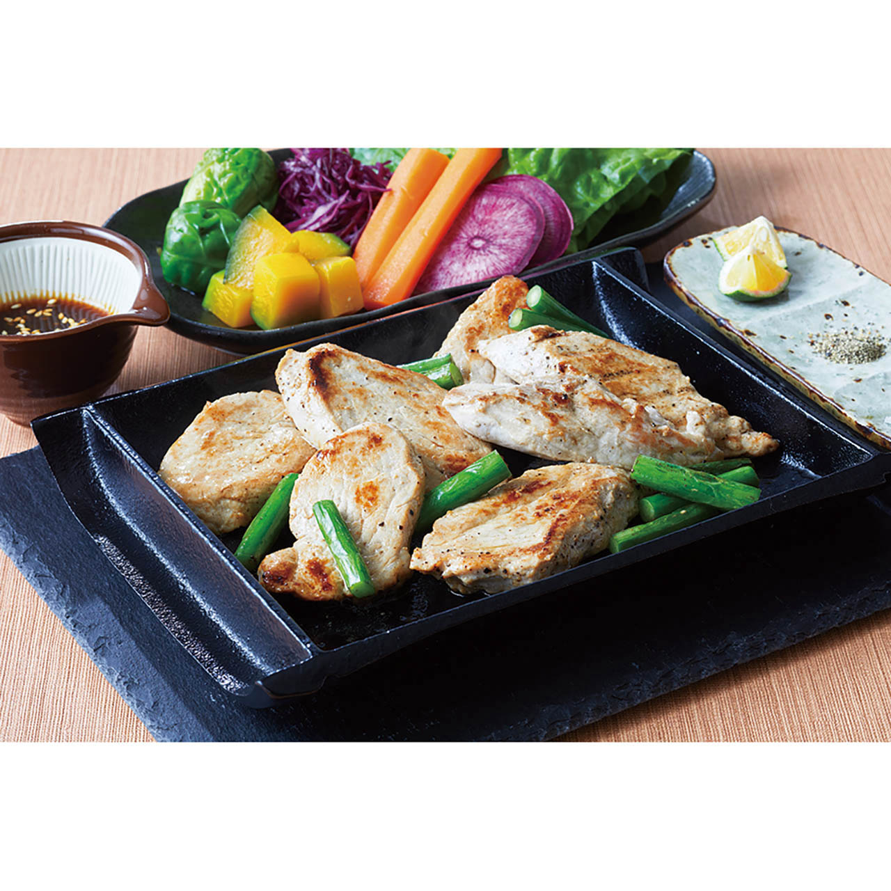 四日市畜産公社推奨の三重県産「さくらポーク」。その名の通り美しいさくら色をした肉質は、とてもジューシーで甘味があるのが特徴です。解凍後、フライパン等で焼いていただいたり、パン粉などをつけ、油で揚げ、ひとくちヒレカツとしても美味しくお召し上がれます。