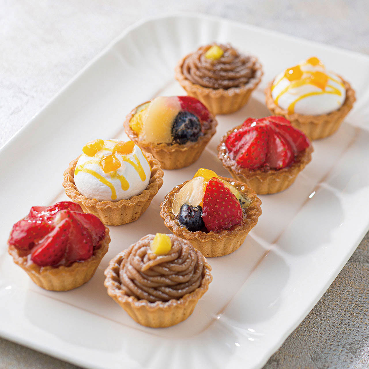 ■商品詳細 フリュイ、マンゴー、苺、モンブラン各2個計8個※直径約4.5~5cm 高さ約4~4.5cm