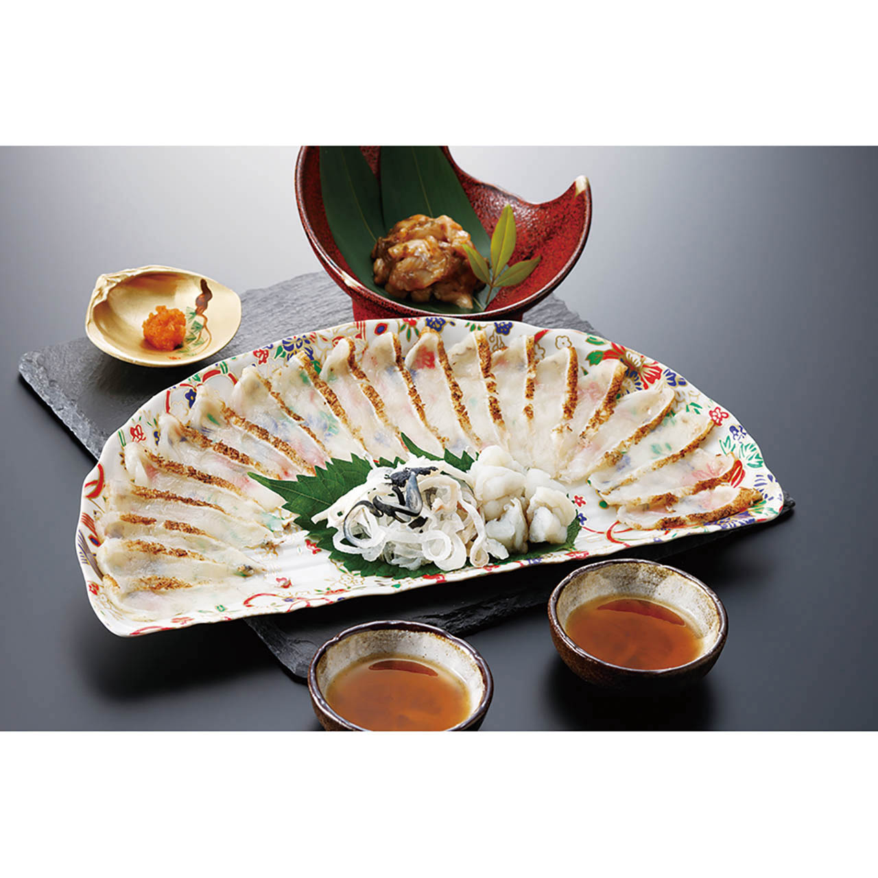 活天然マフグ身の表面を網焼きし、美味しさをぎゅっと閉じ込めました。専門の職人が引いた、炙り刺身は外側は香ばしく、内側は透明感があり生の食感が楽しめます。とらふくの身を豆板醤などで漬け込んだ珍味とセットになっています。-196℃の急速凍結にて鮮度を閉じ込めました。母の日の食卓をふぐで豪華に演出しましょう!