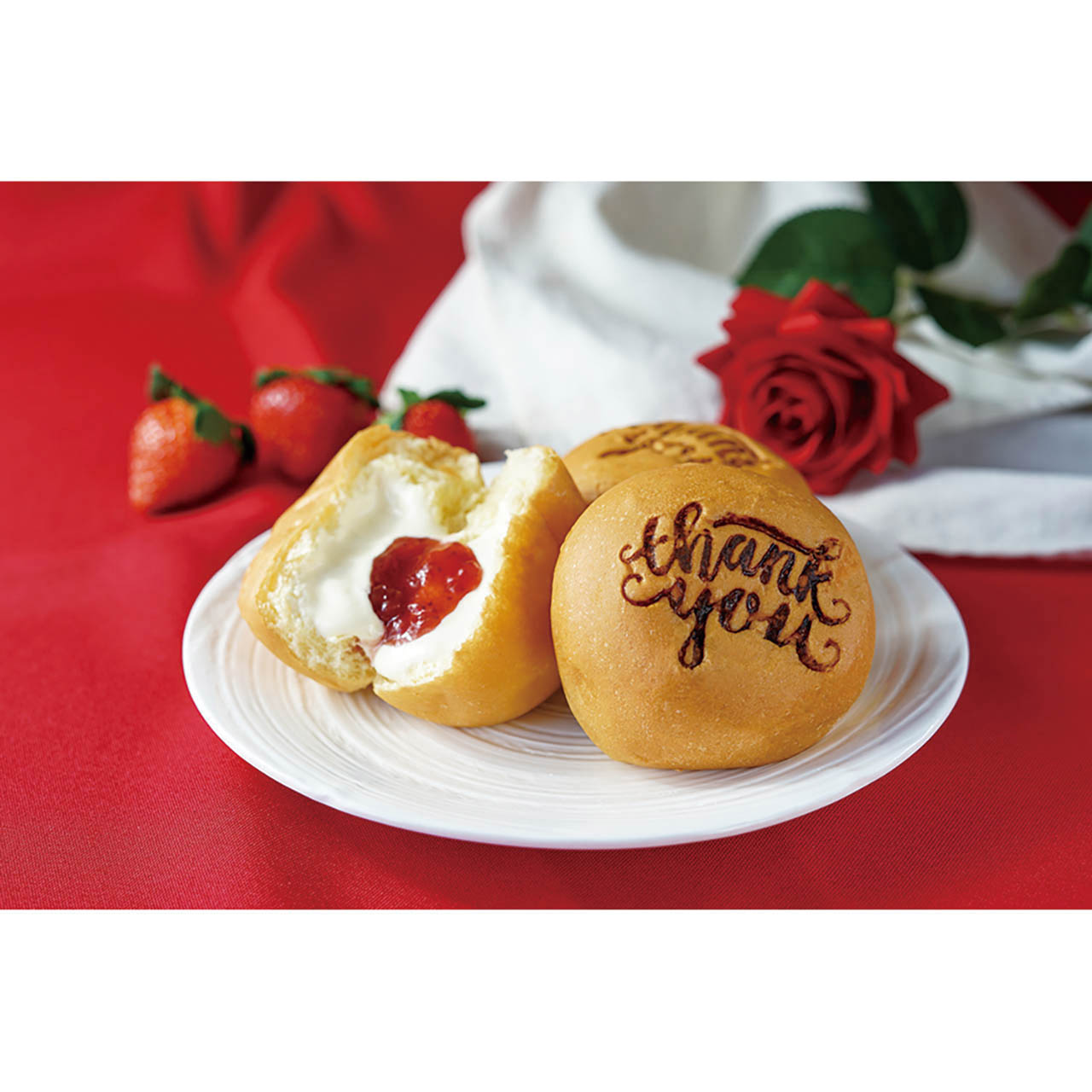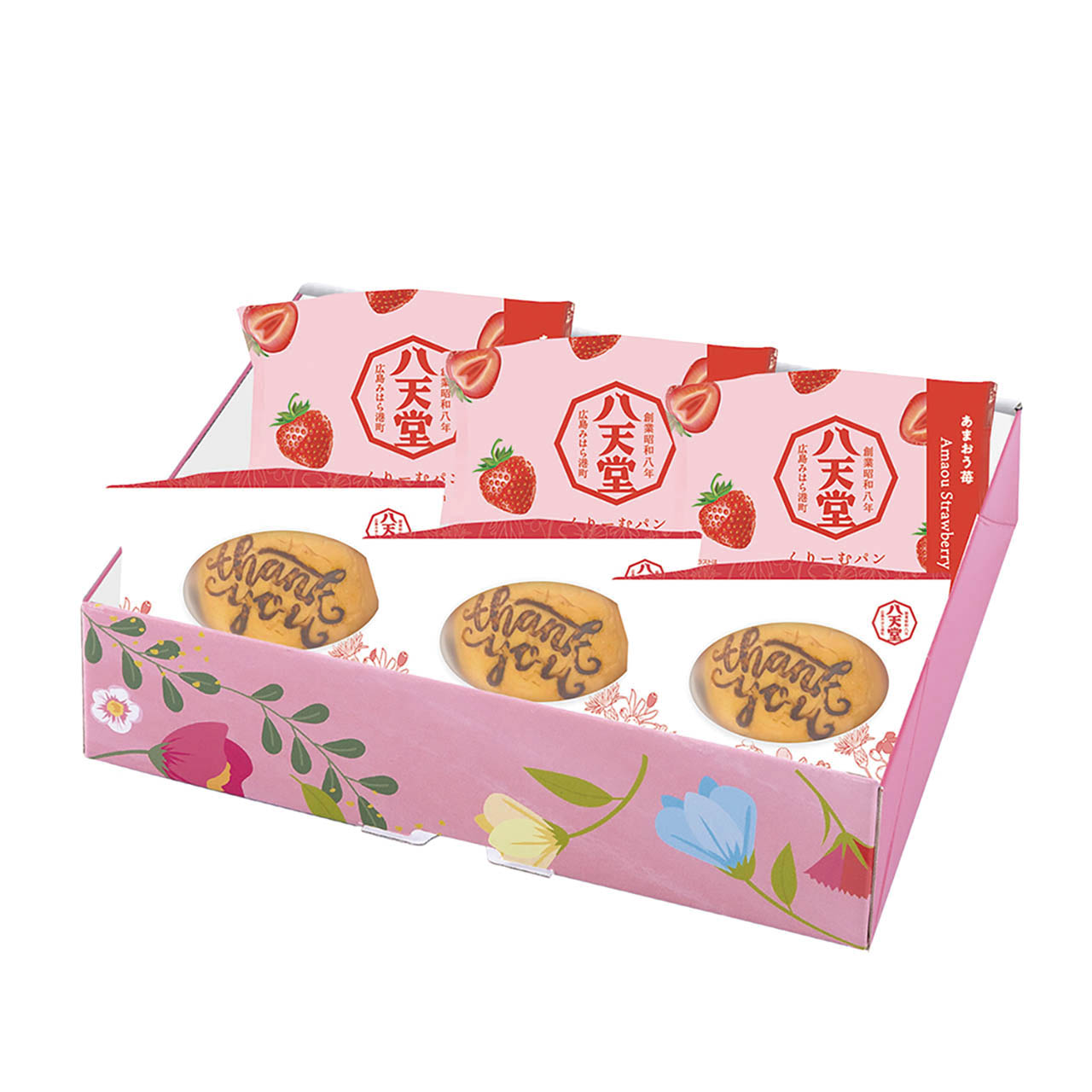 Thank youの焼き印の入ったくりーむパンとくりーむパンあまおう苺の詰合せで、日頃の感謝を伝えませんか。