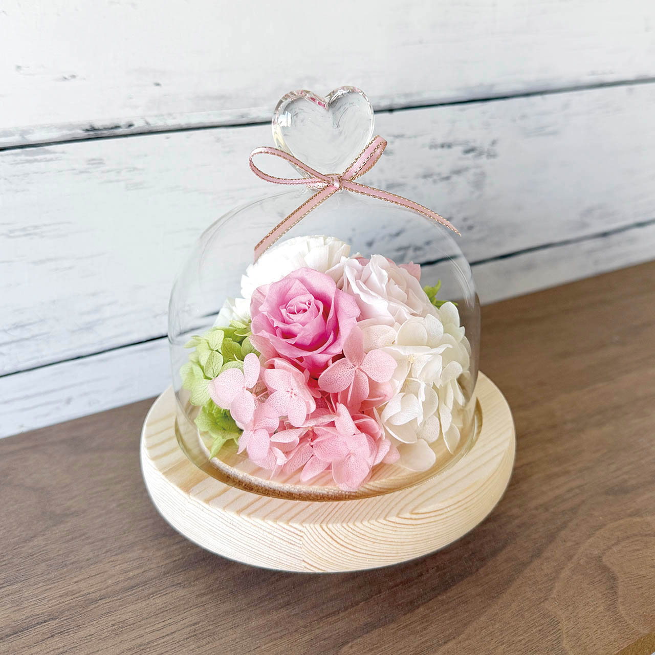 ハートのモチーフが送る人の愛情を表すプリザーブドフラワーアレンジメントは見た目に高級感があるだけでなく保護性能も高いため、さらに長期間お花を美しい状態に保つことが可能です。