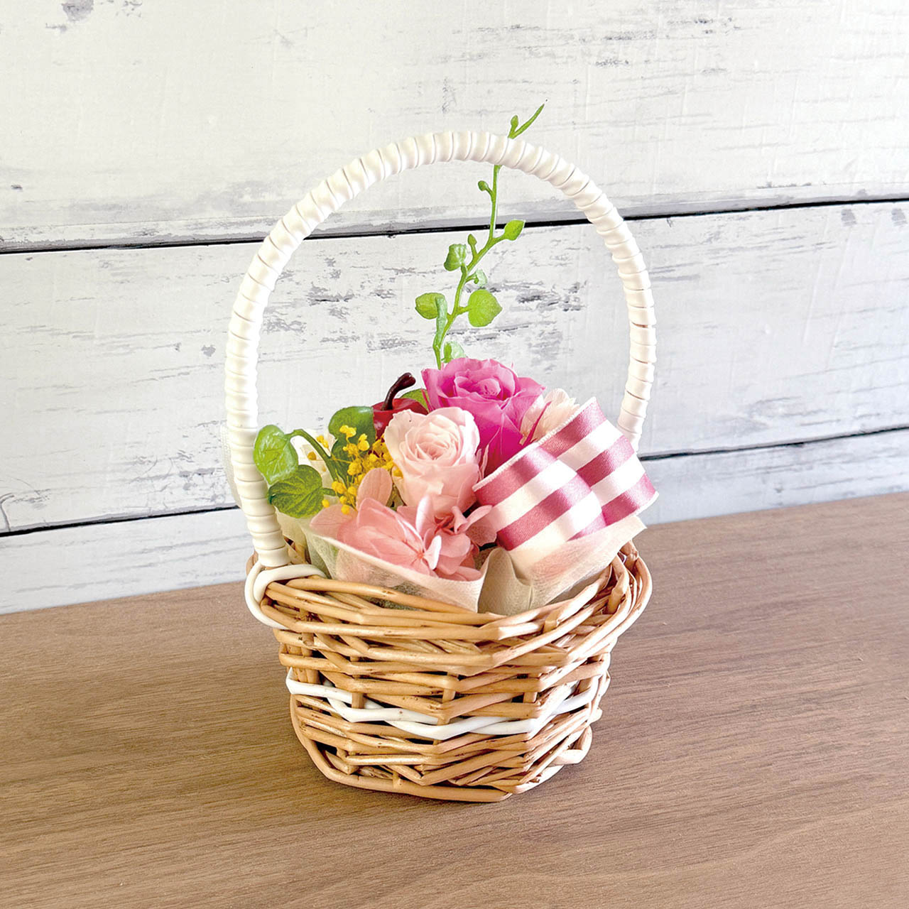 ■商品詳細 プリザーブドフラワー、ドライフラワー、アーティフィシャルフラワー、リボン、紙ピック、フローラルフォーム、柳、塩化ビニル