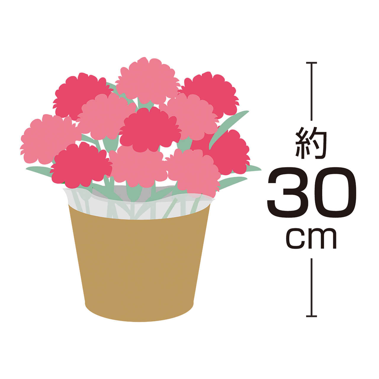 ■商品詳細 カーネーション(ホットハート)5号1鉢、高さ:約30cm、バスケットもしくはラッピングバッグ、取扱いの手引き