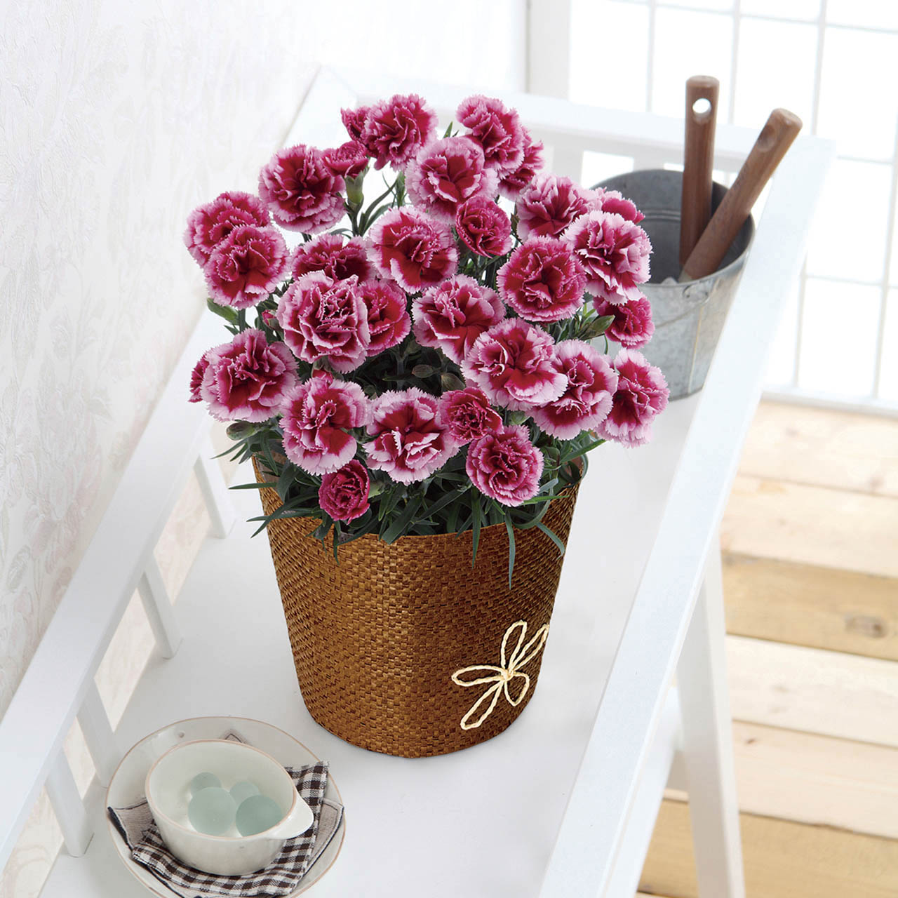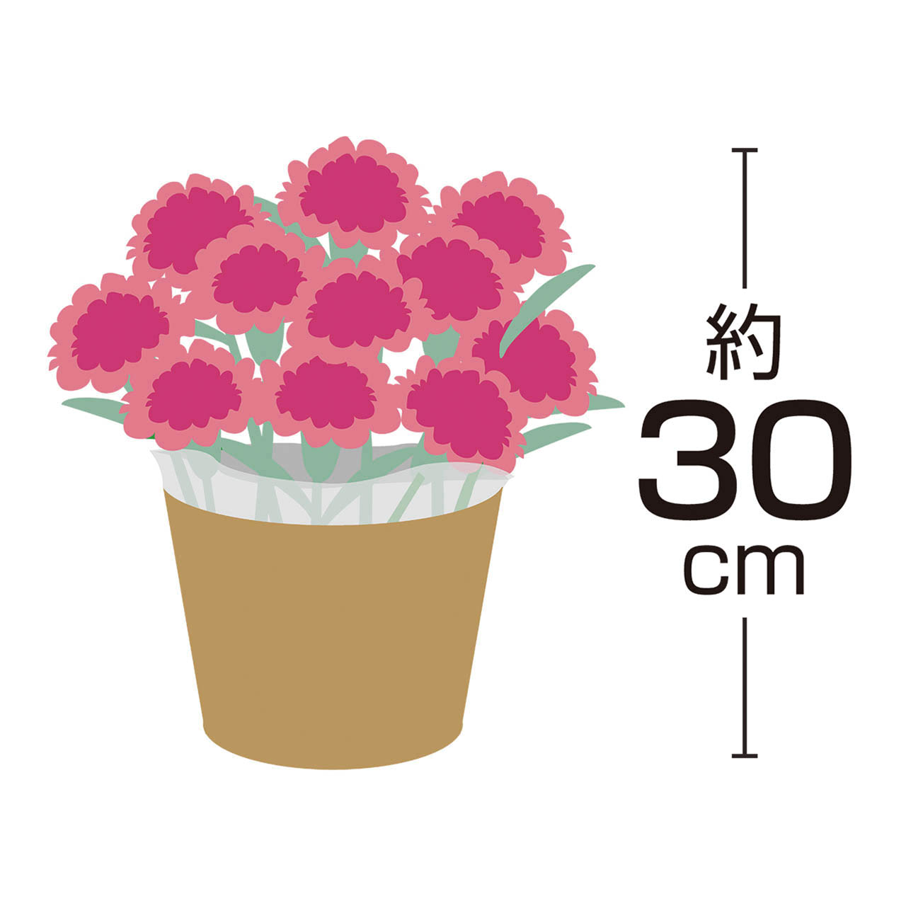 ■商品詳細 カーネーション(プラムタルト)5号1鉢、サイズ:高さ:約30cm、バスケットもしくはラッピングバッグ、取扱いの手引き