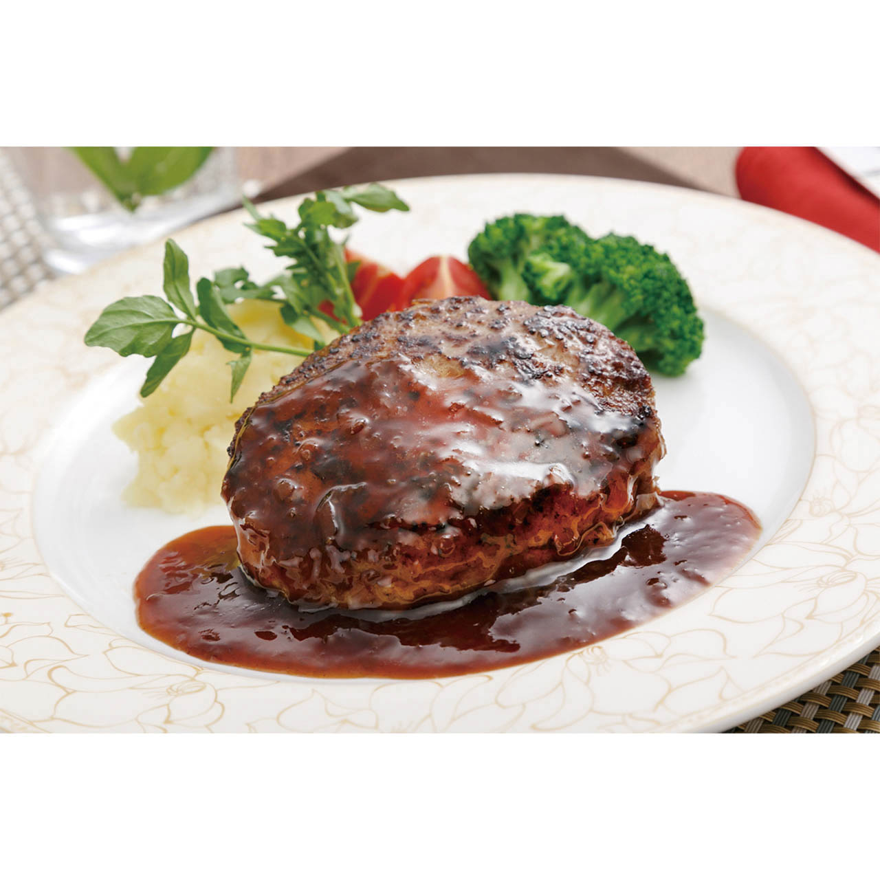 厳選した牛肉とその日仕入れた玉ねぎ、卵をその日の内に加工し徹底して鮮度にこだわっています。ワインと黒トリュフを入れた風味豊かなソースをかければ、こだわりハンバーグの完成です。