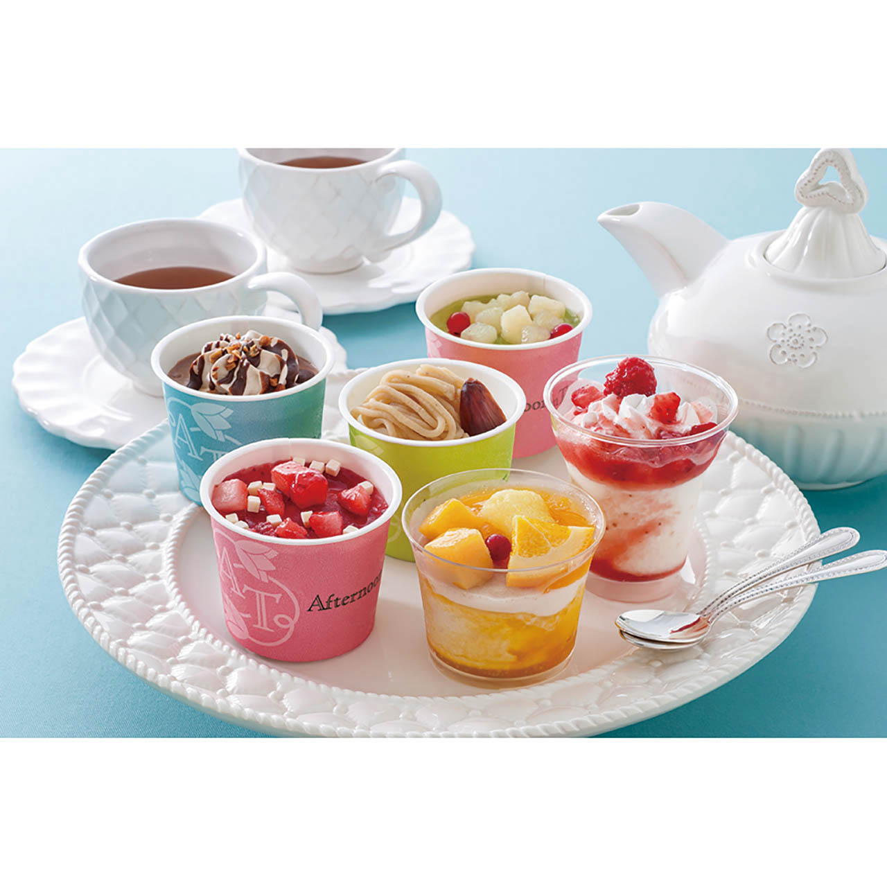 全国に店舗を展開する「アフタヌーンティー・ティールーム」の華やかなアイスギフト。店舗で人気のスイーツメニューやアレンジティーをイメージした6種類の詰合せです。