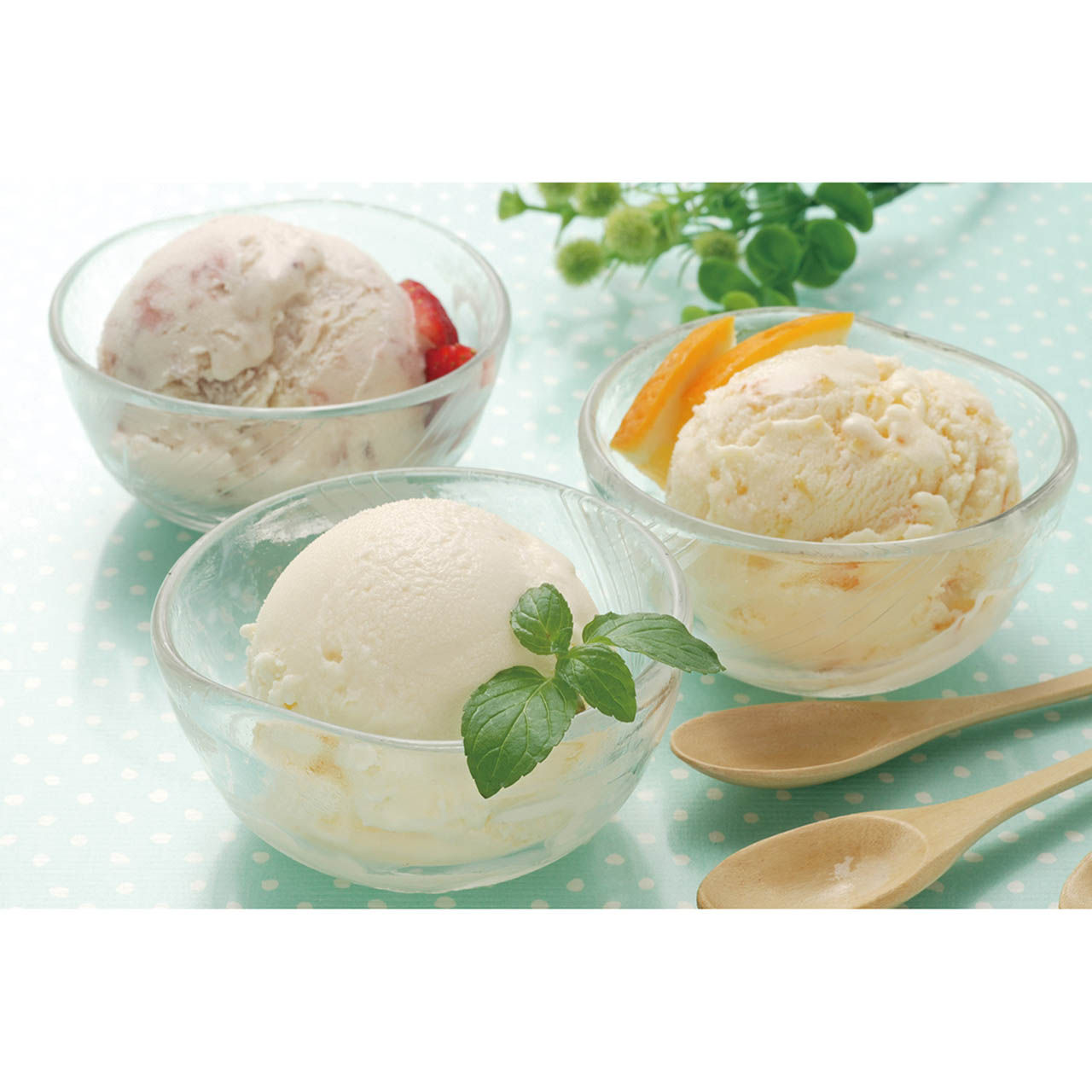 ■商品詳細 フローズンヨーグルト(プレーン)、(ストロベリー)、(ナツミカン)各85g×各3