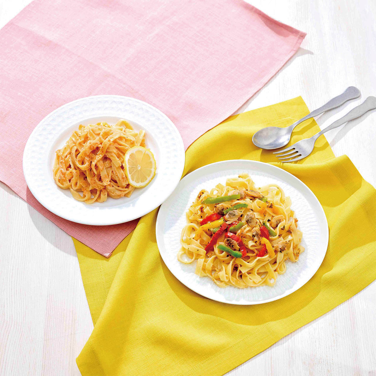 もつもちのフィットチーネ麺を、電子レンジで簡単に調理できます。明太子をたっぷり使用した明太アヒージョと明太クリームソースの2種類をお楽しみ頂けます。