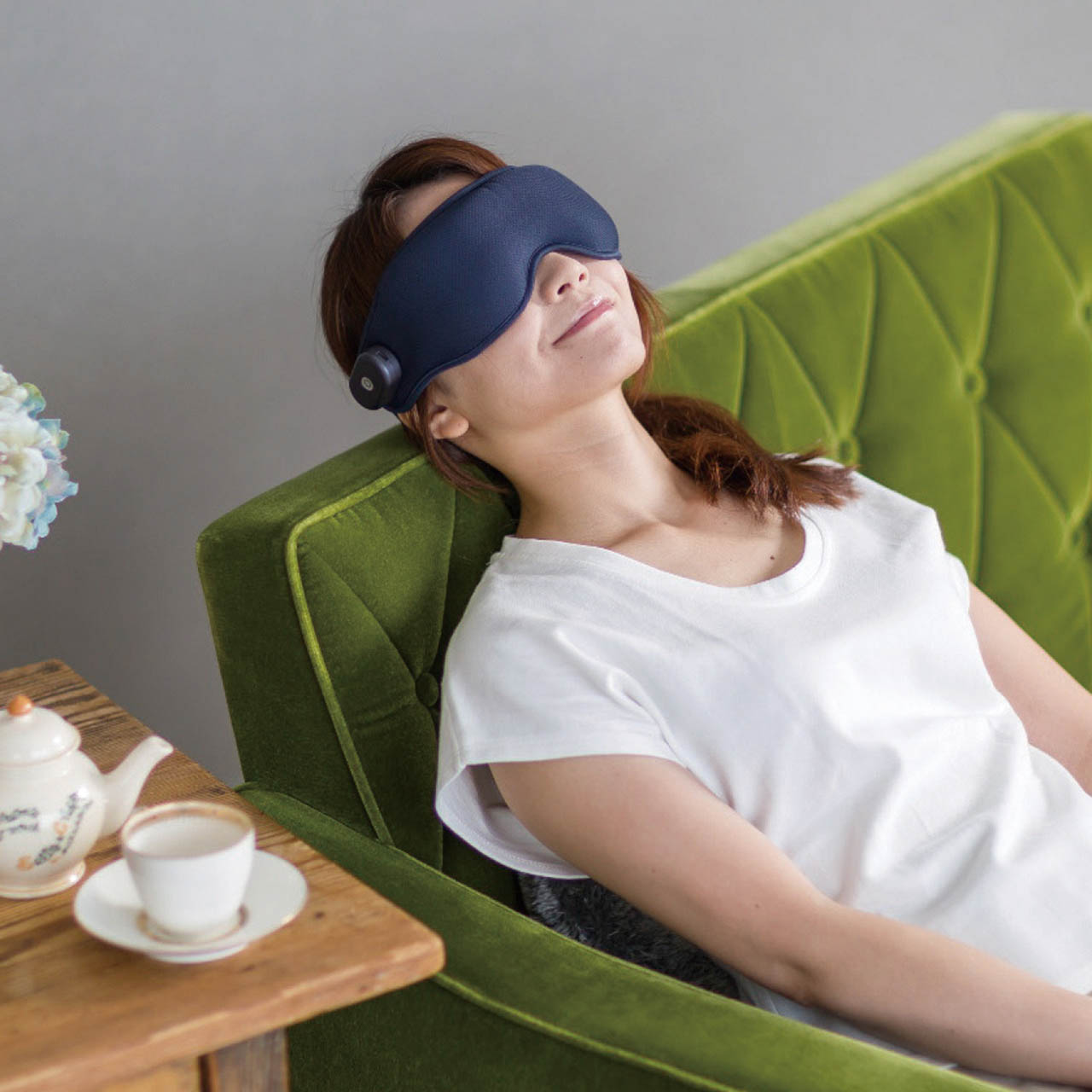 振動・温感、2つの機能で疲れ目にアプローチする、充電式のホットアイマスクです。リズミカルなウェーブ振動で目元をやさしくタッピング。約45℃のヒーターでじんわり温め睡眠をサポートしてくれます。