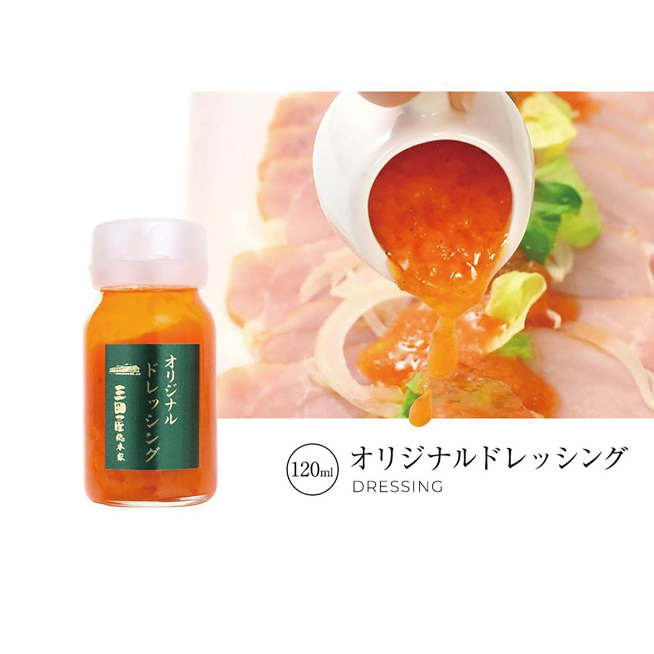 ■商品詳細 スモークロースハム60g×2・スモークベーコン50g・スモークウインナー100g・オリジナルドレッシング120ml賞味期限:製造日より冷蔵30日[兵庫県(加工地)]【小麦・卵・乳成分】