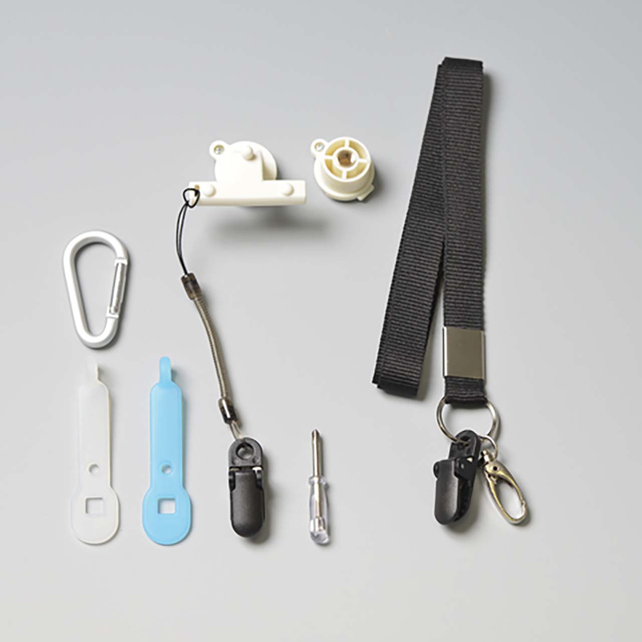 ■商品詳細 つり下げ用アタッチメント (ホワイト、ブルー各1本)、 カラビナ、ネックストラップ(ナスカン付き)、 ドライバー、三脚取り付け用電池フタ、 ヘルメット取り付け用電池フタ (落下防止ストラップ付き)、お試し用電池 (CR2032コイン形リチウム電池)、取扱説明書(本書)保証書付、本体サイズ/幅 58mm × 高さ 108mm × 奥行 36mm